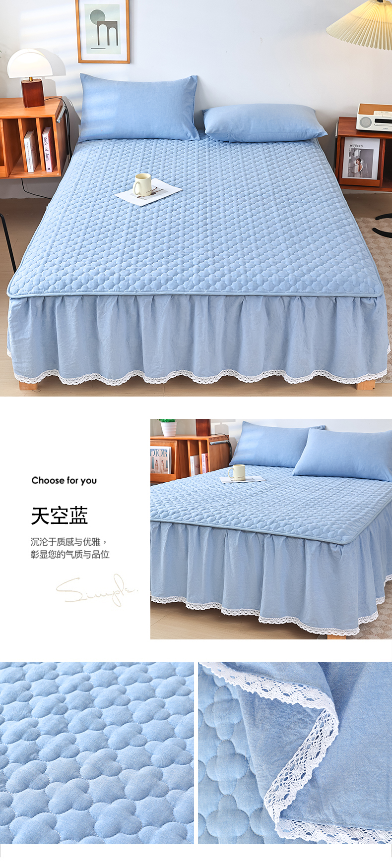 欧妮家纺 2026新款全棉色织水洗棉夹棉床裙 全棉色织水洗棉-冰淇淋