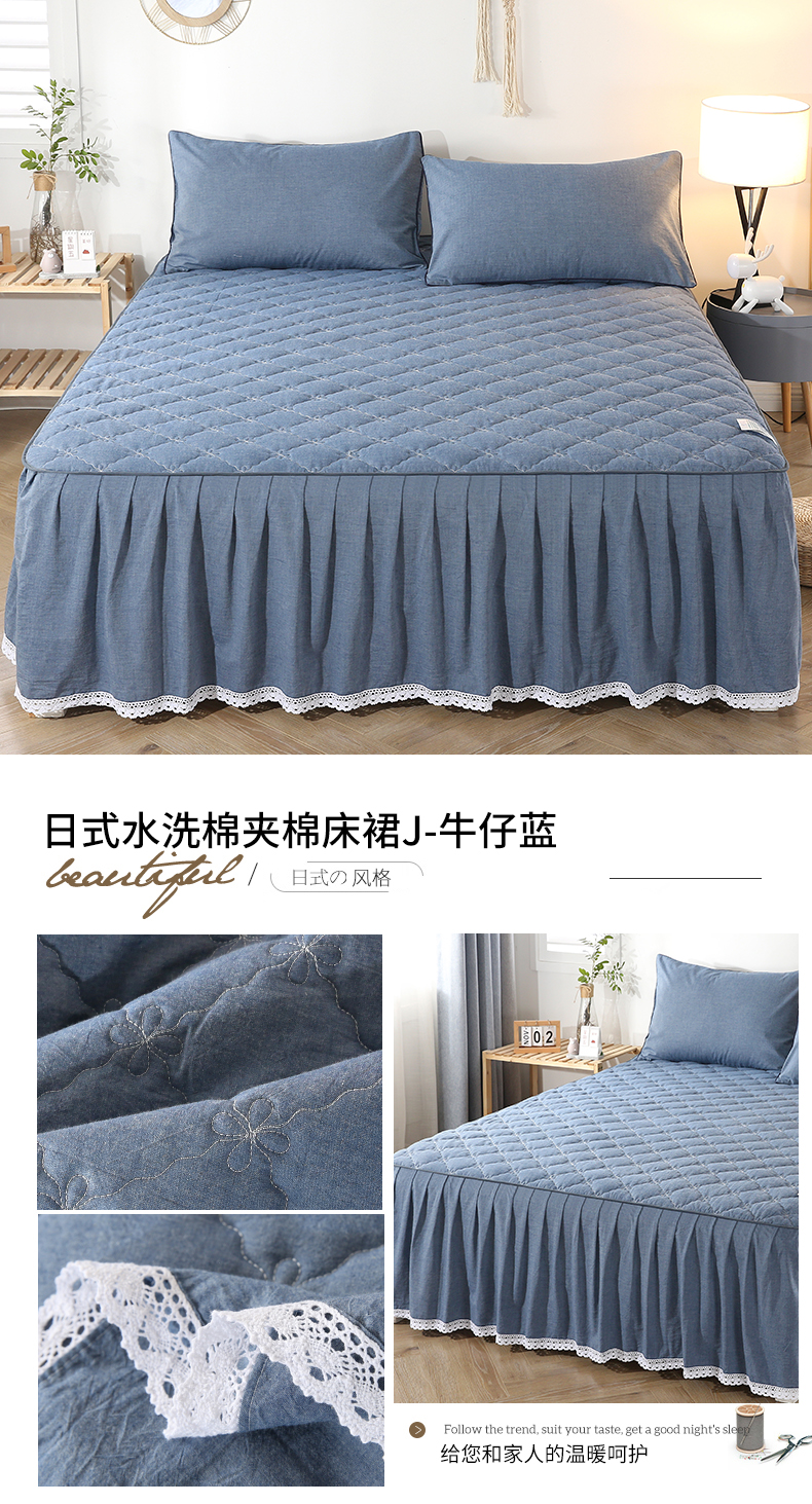 • 91家纺网 家纺一手货源 找家纺 欧妮家纺 2026新款全棉色织水洗棉夹棉床裙 全棉色织水洗棉-冰淇淋
