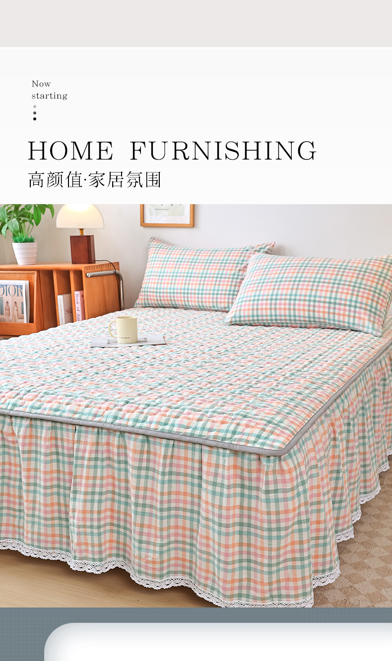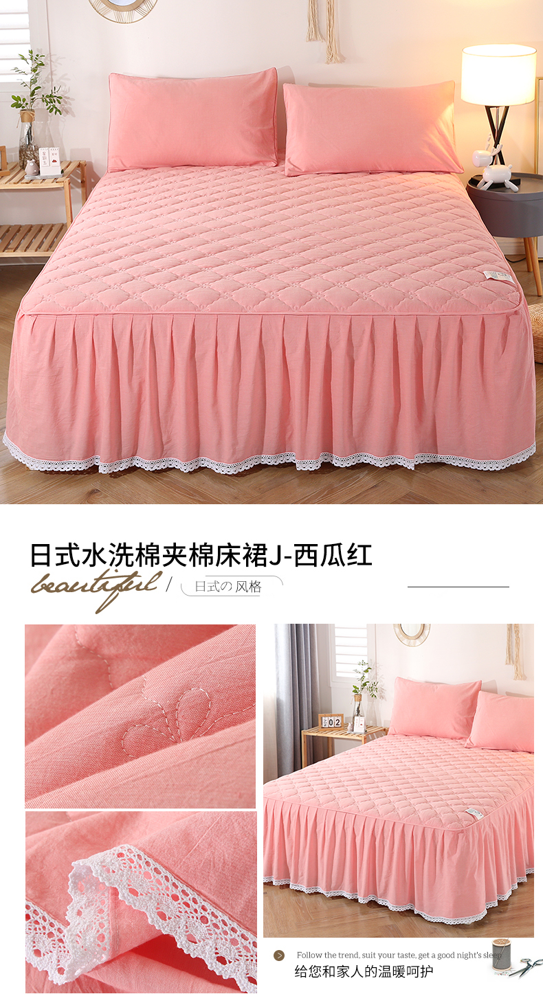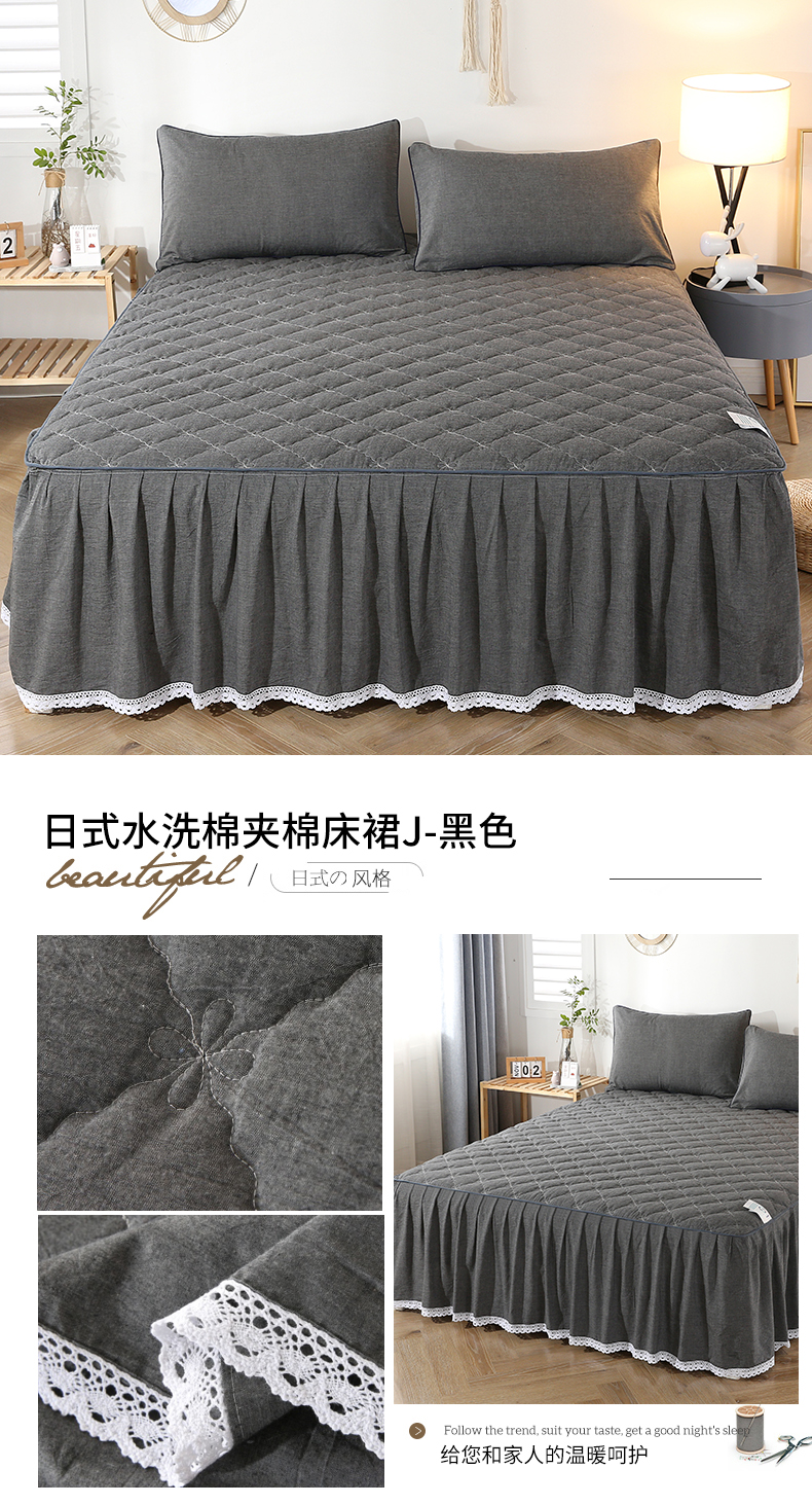 • 91家纺网 家纺一手货源 找家纺 欧妮家纺 2026新款全棉色织水洗棉夹棉床裙 日式水洗棉夹棉床裙J-浅咖