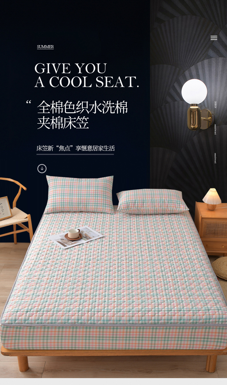 (总)欧妮家纺 2026新款日式全棉水洗棉色织夹棉床笠-席梦思保护套,日式全棉床笠-焦糖咖,日式全棉床笠-草绿,日式全棉床笠-灰格,日式全棉床笠-重楼黑,日式全棉床笠-重楼蓝,日式全棉床笠-重楼绿