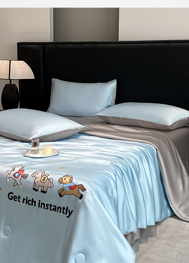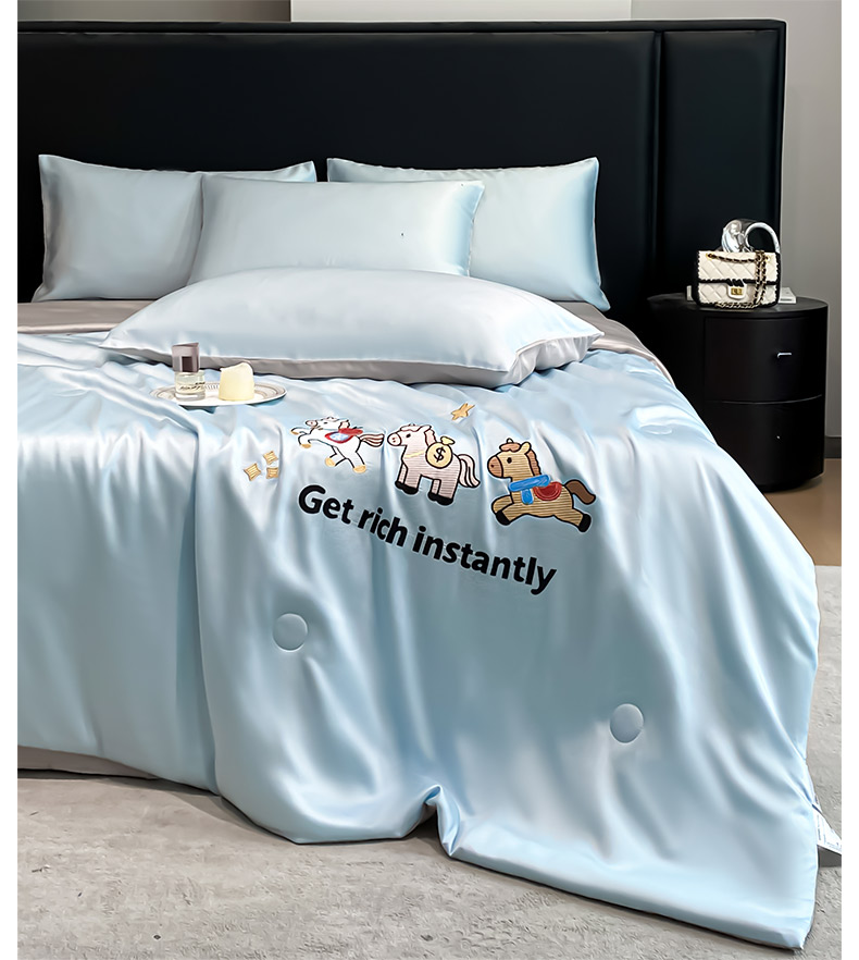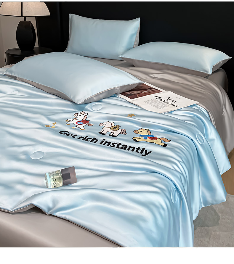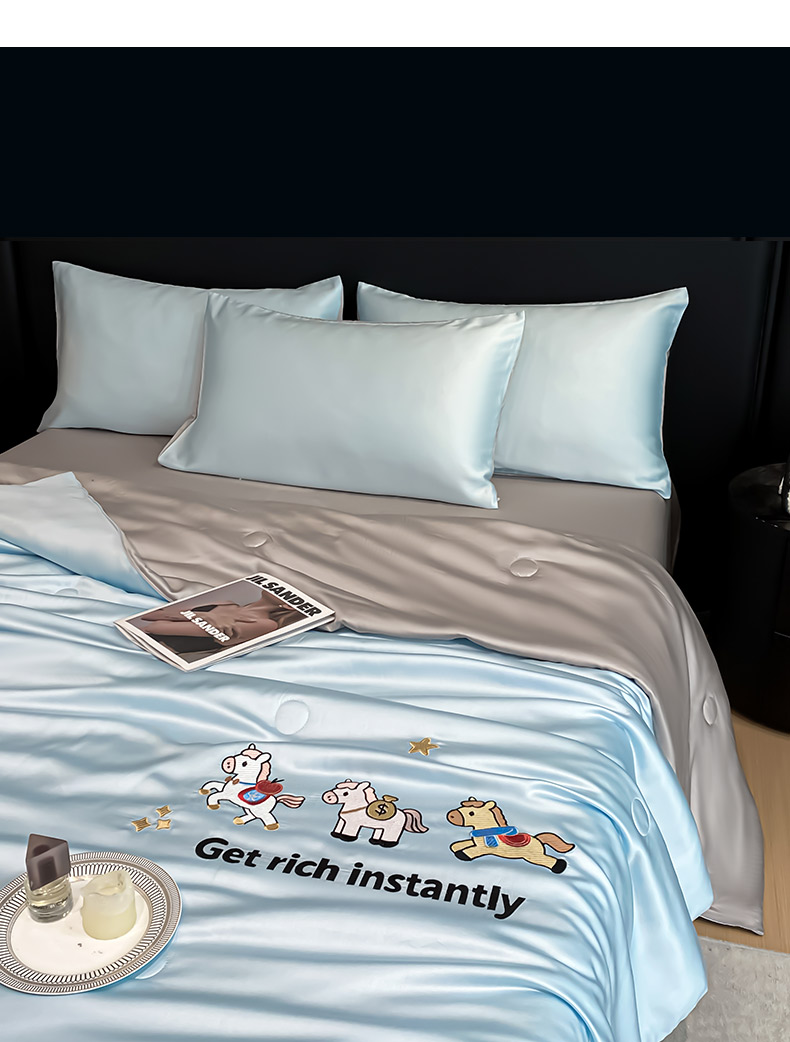 • 91家纺网 家纺一手货源 找家纺 利欧 2026新款水洗天丝刺绣夏被四件套-马上有钱 马上有钱-月光蓝+山灰