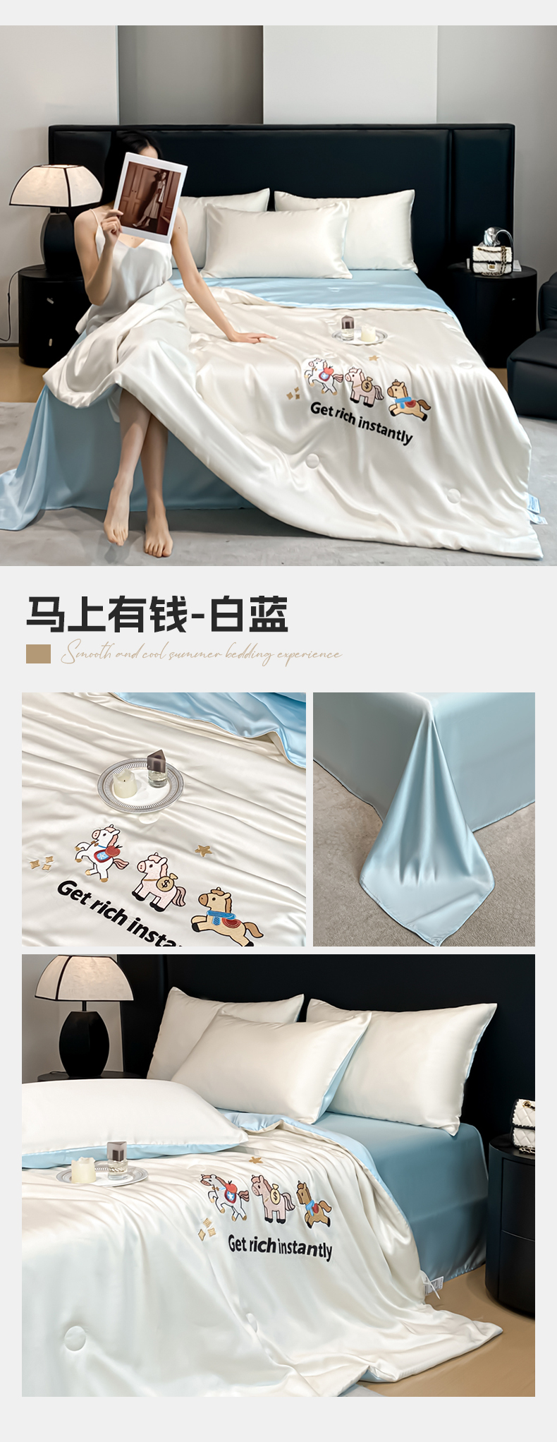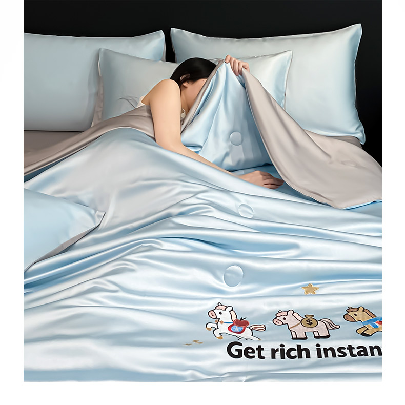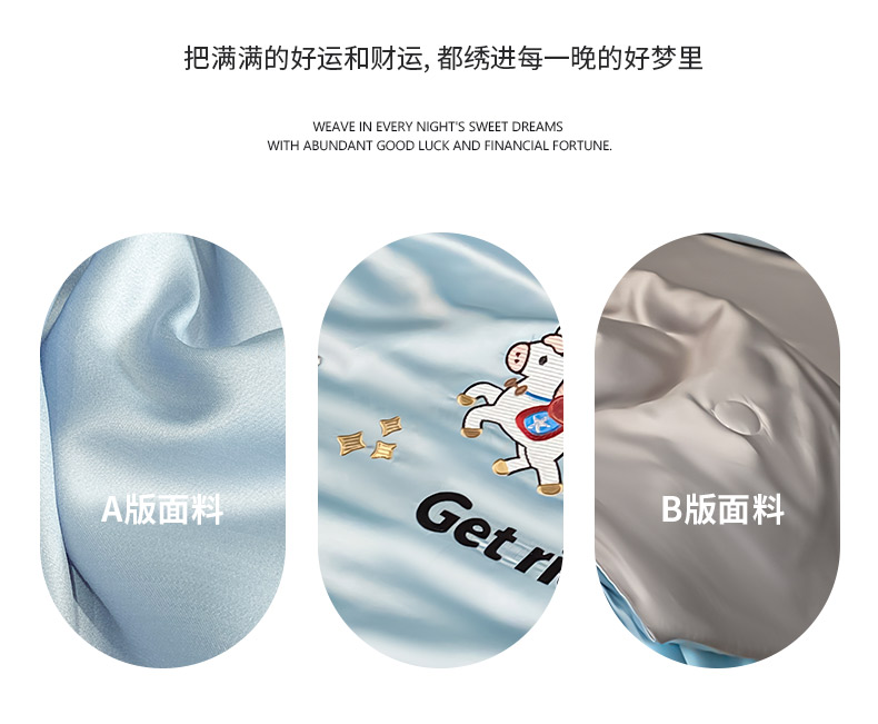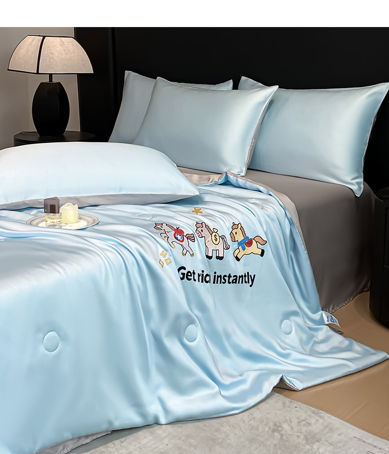 • 91家纺网 家纺一手货源 找家纺 利欧 2026新款水洗天丝刺绣夏被四件套-马上有钱 马上有钱-月光蓝+山灰