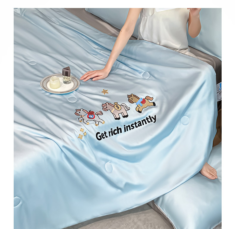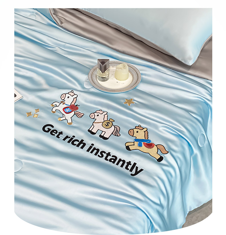 利欧 2026新款水洗天丝刺绣夏被四件套-马上有钱 马上有钱-月光蓝+山灰