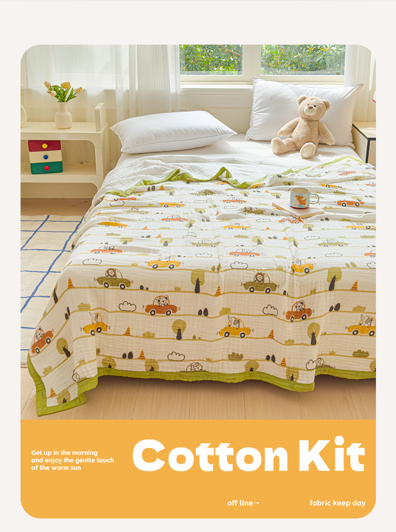 乐家毛巾被(工厂自产自销) 2026新款全棉纯棉六层一体超柔泡泡纱多功能毯 动物汽车