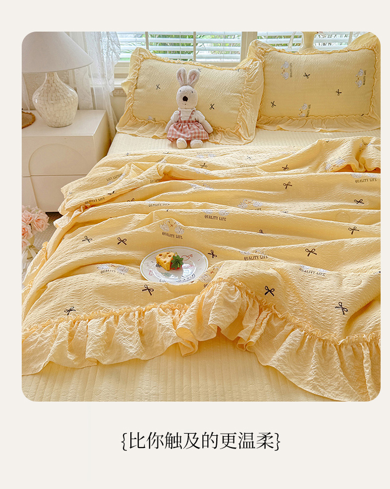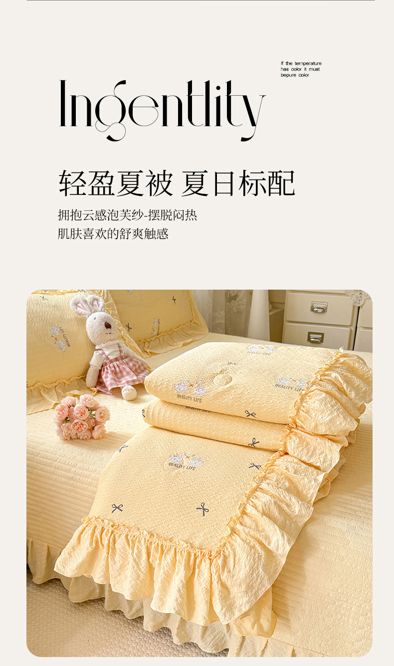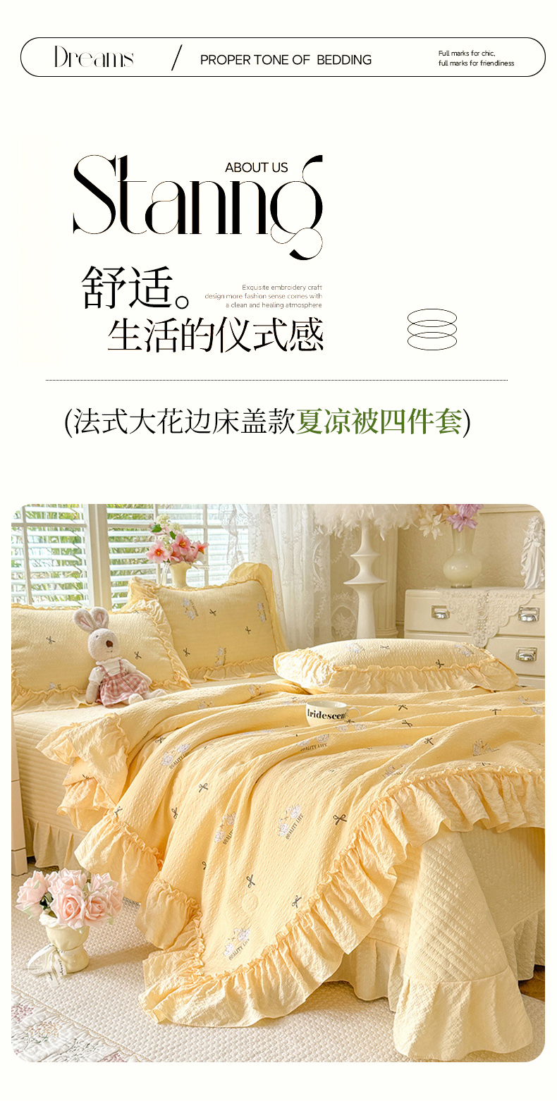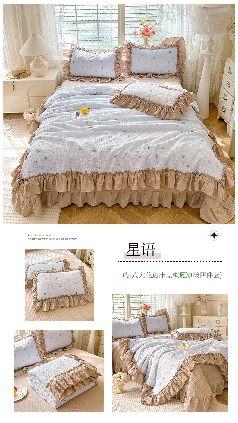 商品名称:(总)韩约家纺 2026新款法式大花边床盖款泡芙棉夏凉被空调被四件套