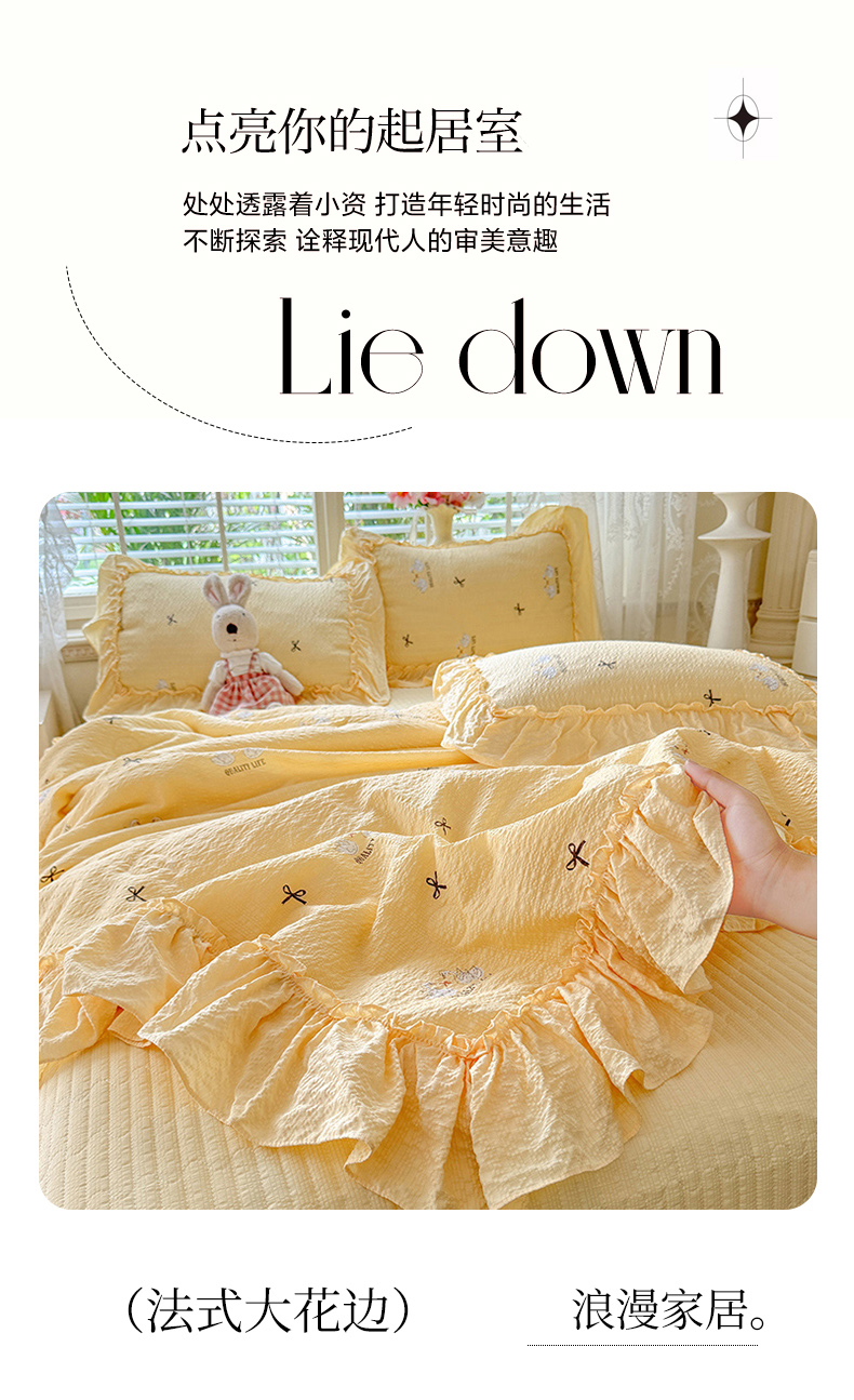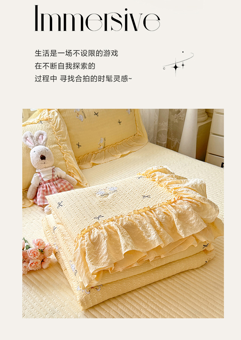 (总)韩约家纺 2026新款法式大花边床盖款泡芙棉夏凉被空调被四件套