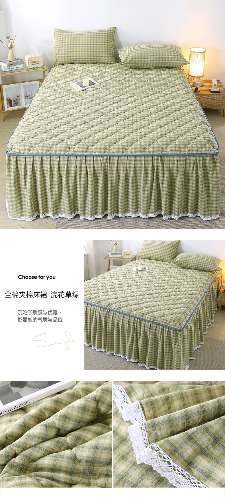 • 91家纺网 家纺一手货源 找家纺 欧妮家纺 2026新款无印全棉水洗棉夹棉单床裙-三件套 全棉夹棉床裙浣花灰格
