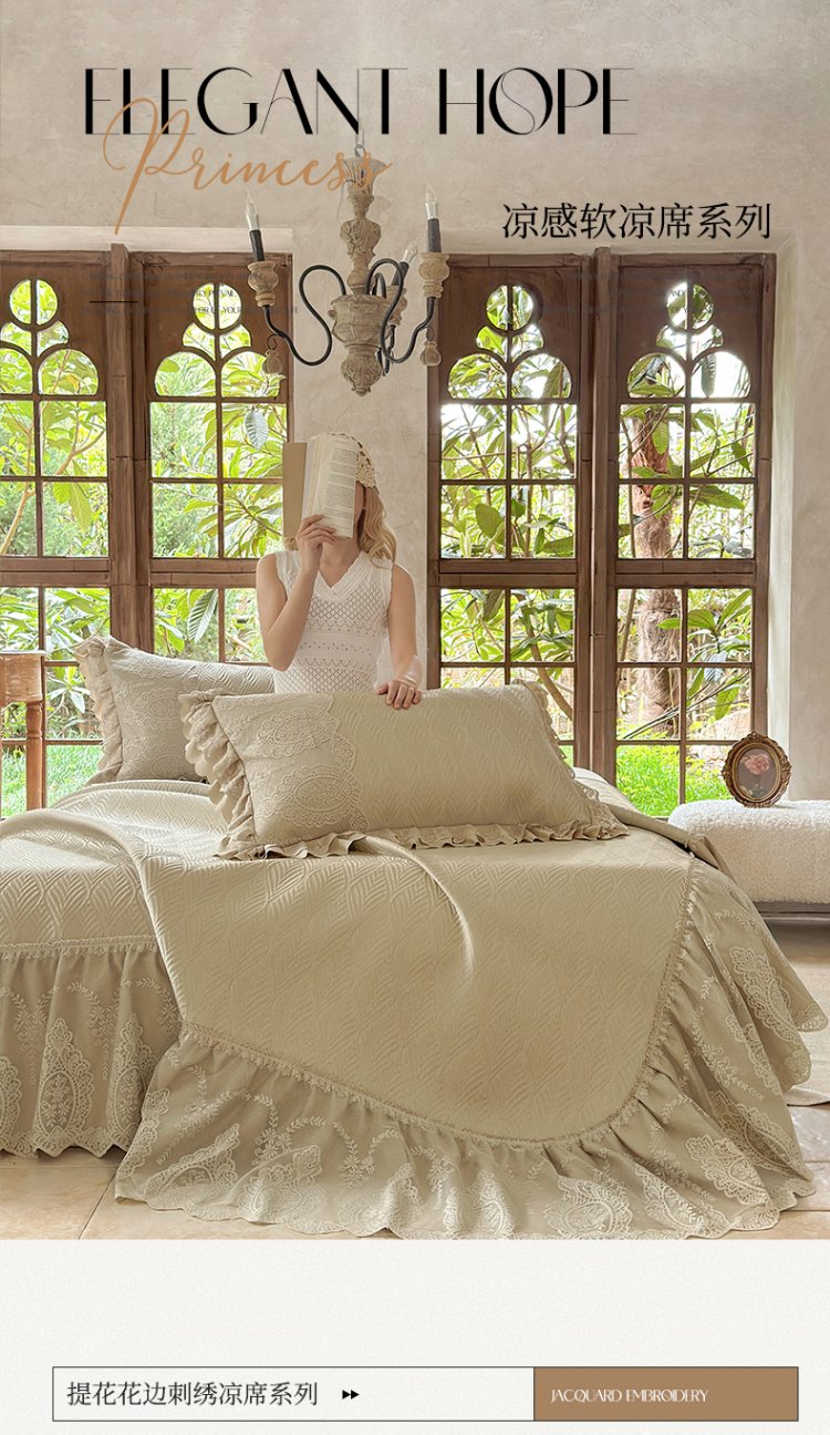 (总)乐朵家居 2026春夏 唐顿庄园 凉豆豆 凉席三件套+可配空调被(加厚复合) 控价238,唐顿庄园-香槟金,唐顿庄园-灰,唐顿庄园-豆沙,唐顿庄园-象牙白