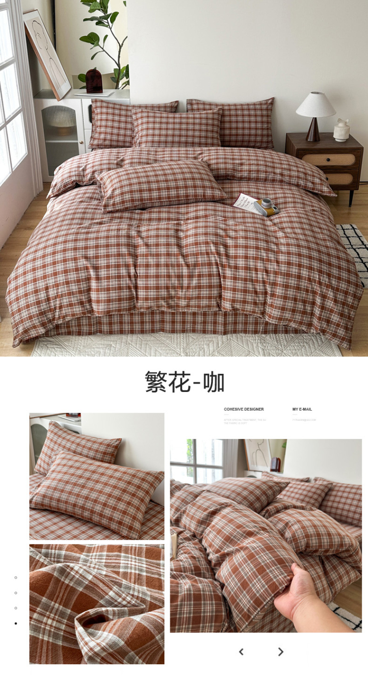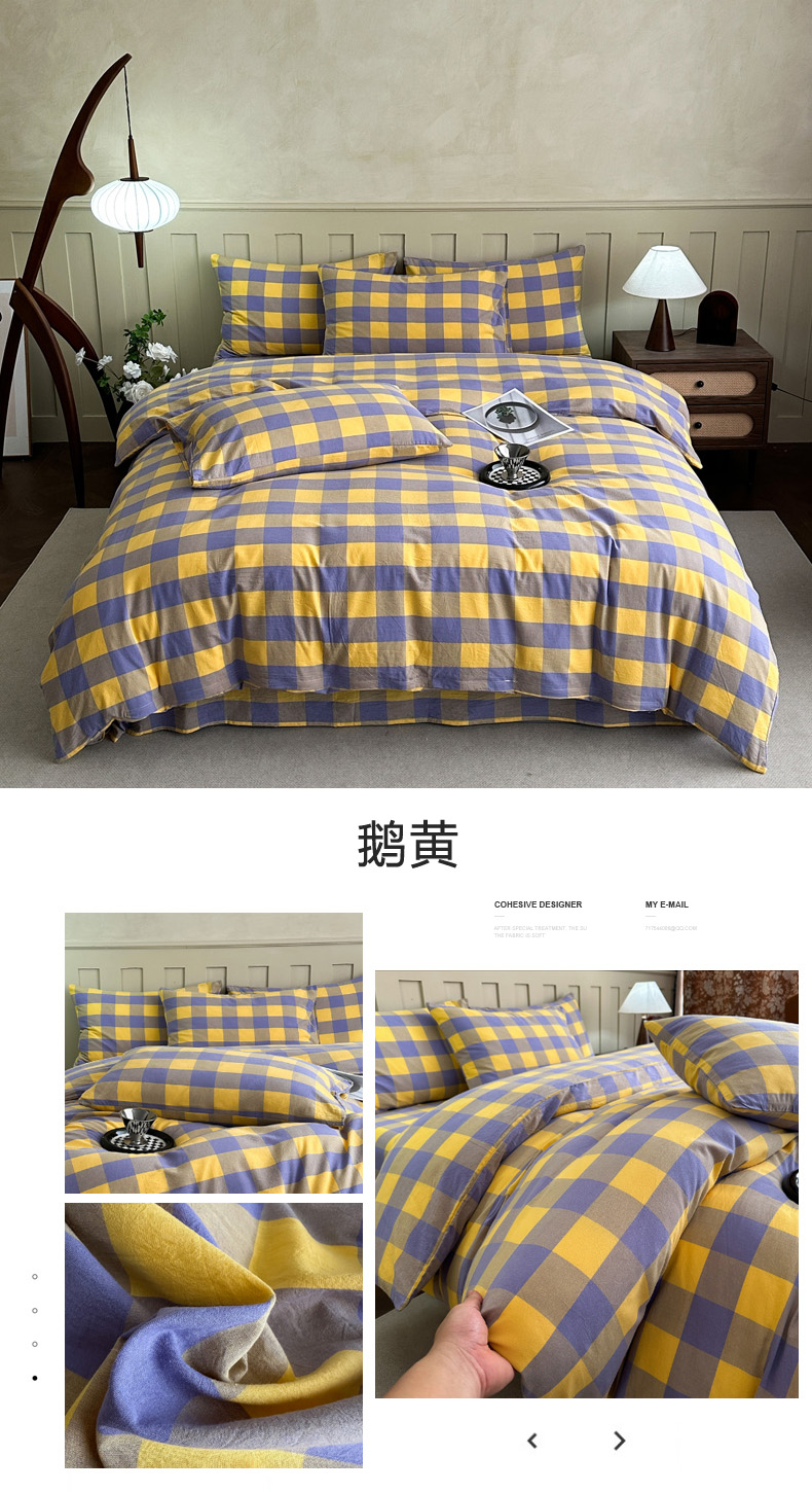 • 91家纺网 家纺一手货源 找家纺 (总)蓝梦 2026新款全棉纯棉色织水洗棉简约四件套-大格,艾格绿,鹅黄,可可灰,蓝粉格,桃粉,优雅兰,宝利格