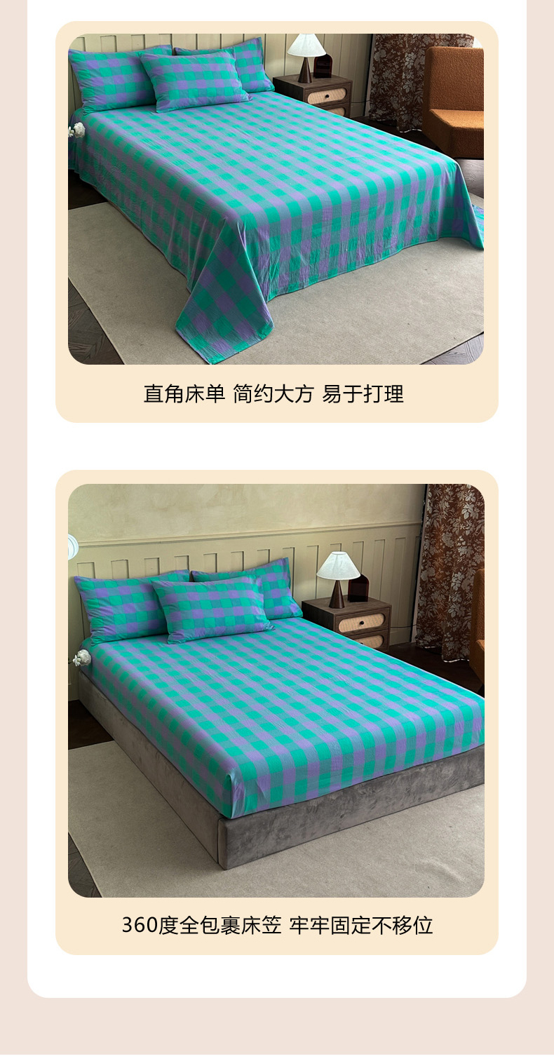 (总)蓝梦 2026新款全棉纯棉色织水洗棉简约四件套-大格,艾格绿,鹅黄,可可灰,蓝粉格,桃粉,优雅兰,宝利格