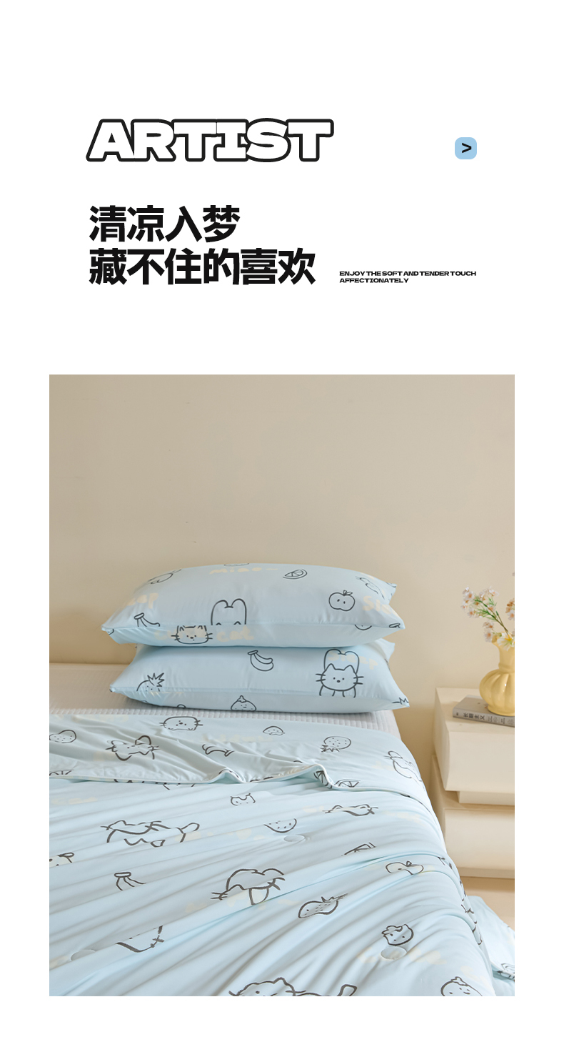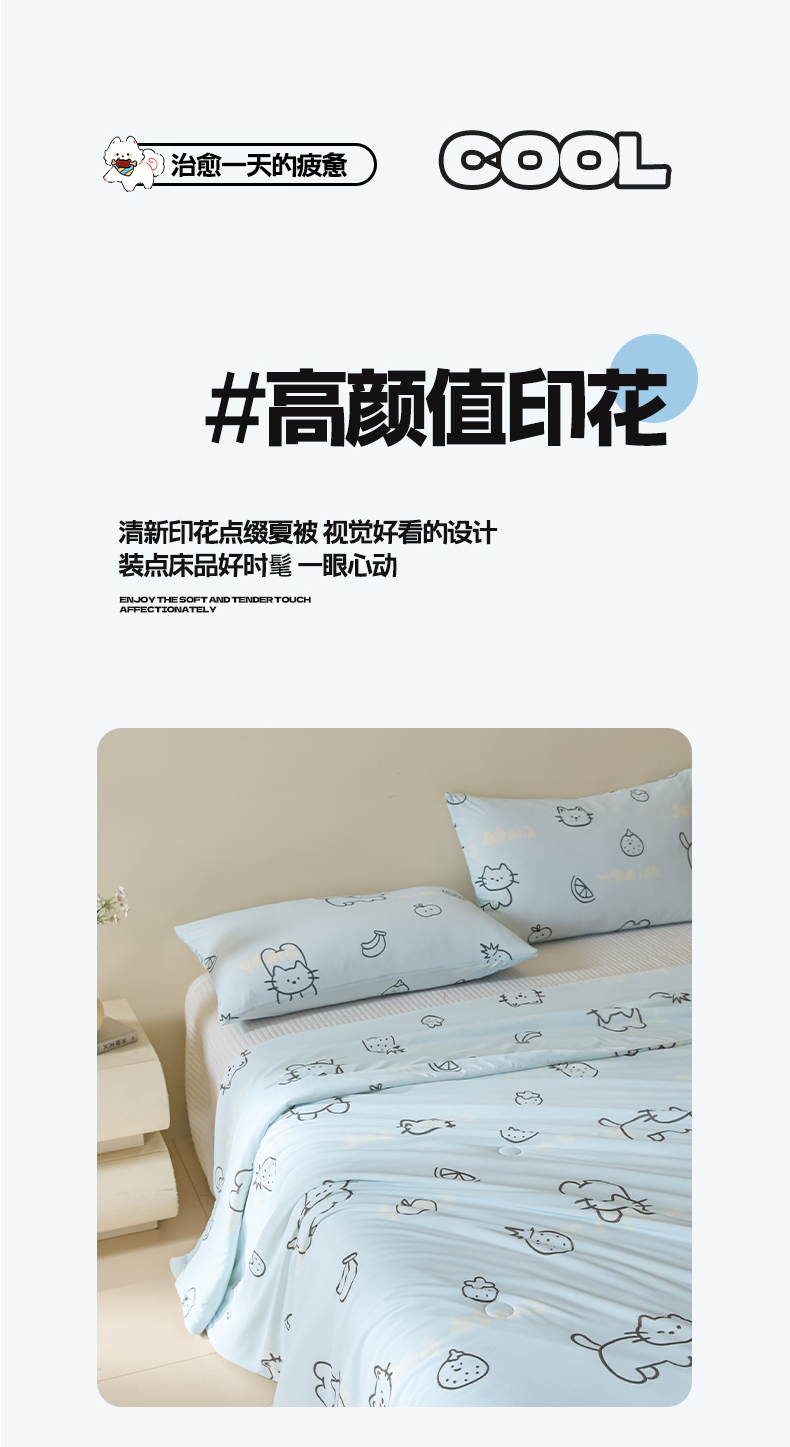 商品名称:一加一 2026新款A类凉感冰皮印花冰蚕被夏被夏凉被空调被 夏日甜猫