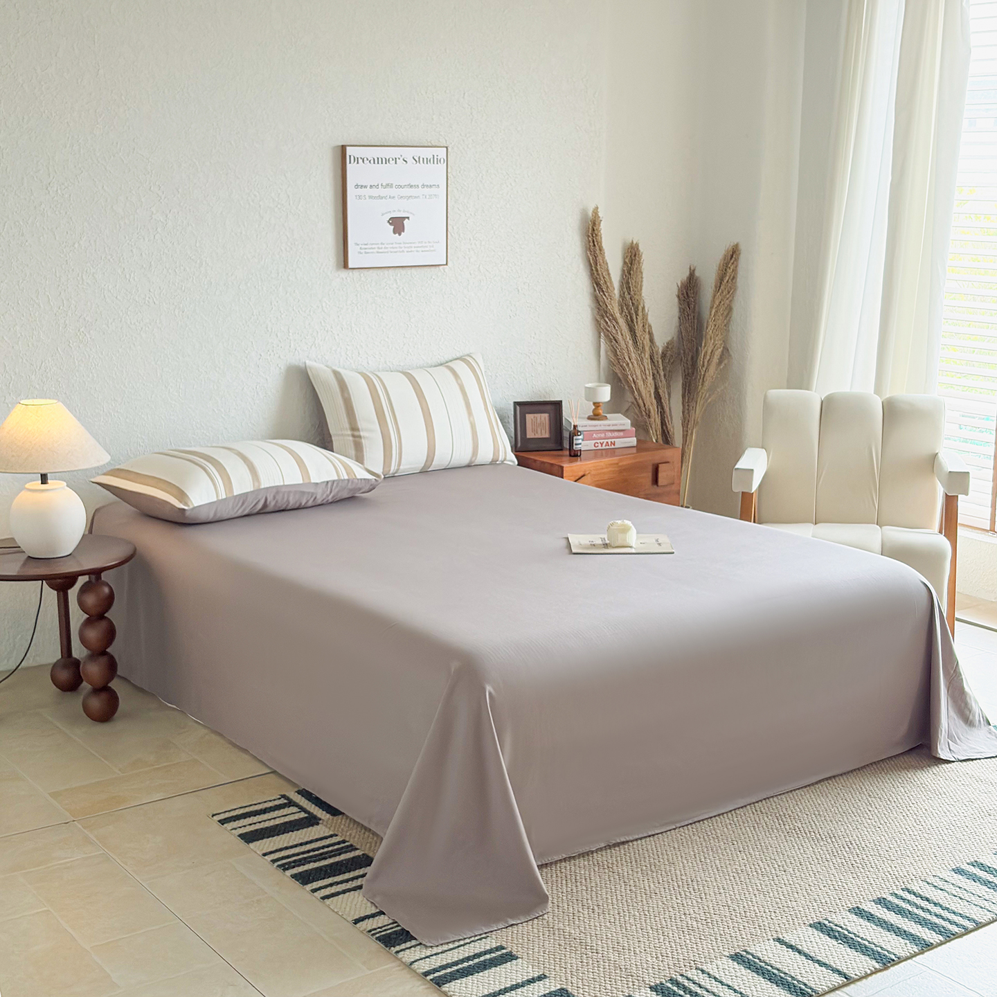 贝尔 2026新款全棉色织提花双层纱单床单 岛屿灰
