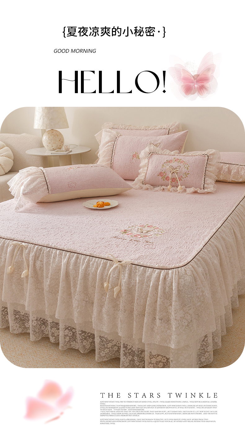 (总)好儿喜家纺 2026新款软凉席空调软席乙纶凉席床裙可机洗夏被夏凉被空调被四件套-漫夏系列,漫夏-浅粉,漫夏-浅蓝,漫夏-浅绿,漫夏-香槟