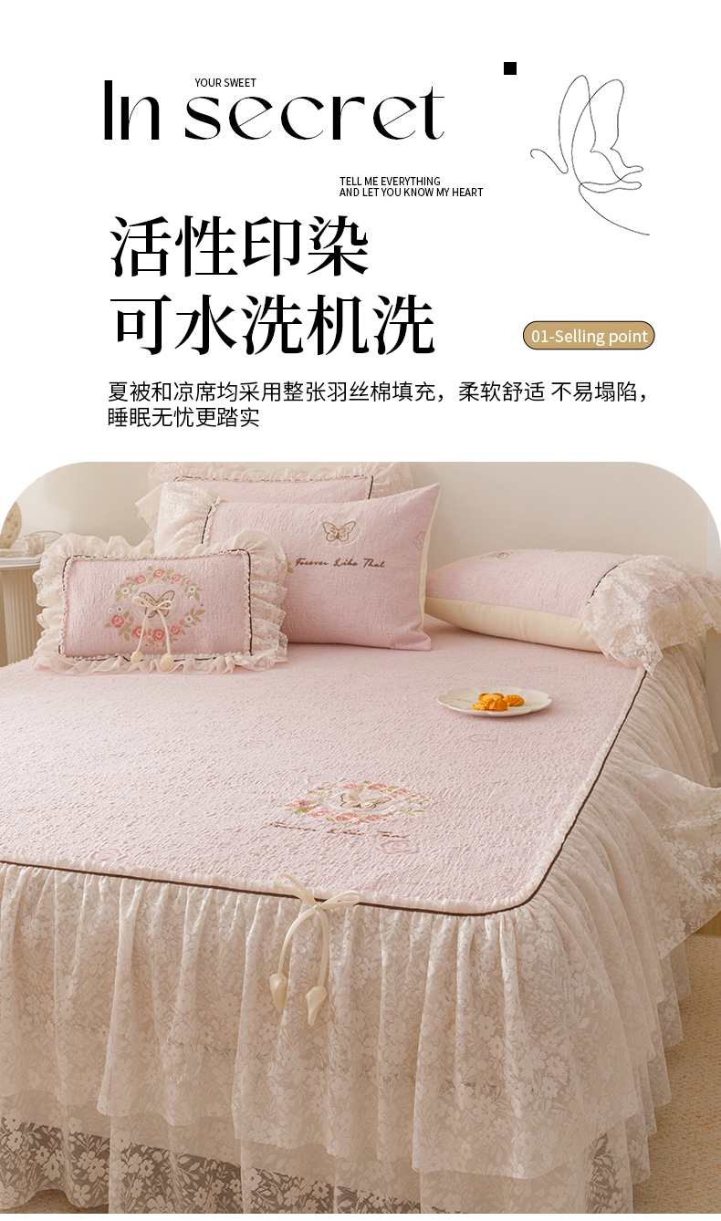 • 91家纺网 家纺一手货源 找家纺 (总)好儿喜家纺 2026新款软凉席空调软席乙纶凉席床裙可机洗夏被夏凉被空调被四件套-蝶语系列,蝶语-蓝,蝶语-奶白,蝶语-浅粉,蝶语-浅灰,蝶语-浅绿