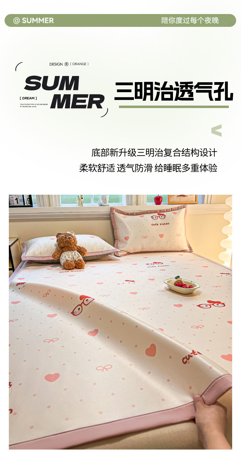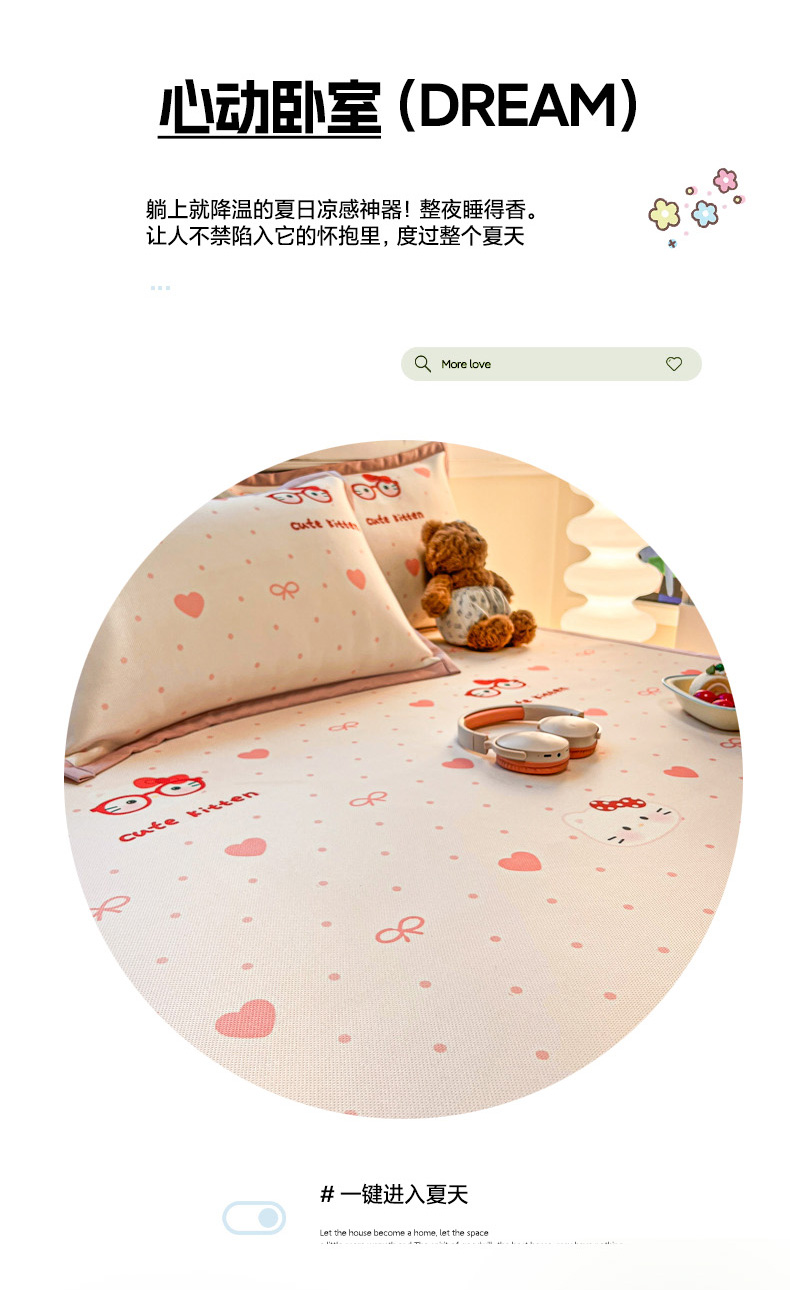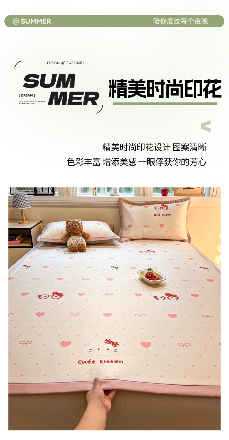 商品名称:女子家纺 2026新款费尔岛风冰丝凉席 甜心凯蒂