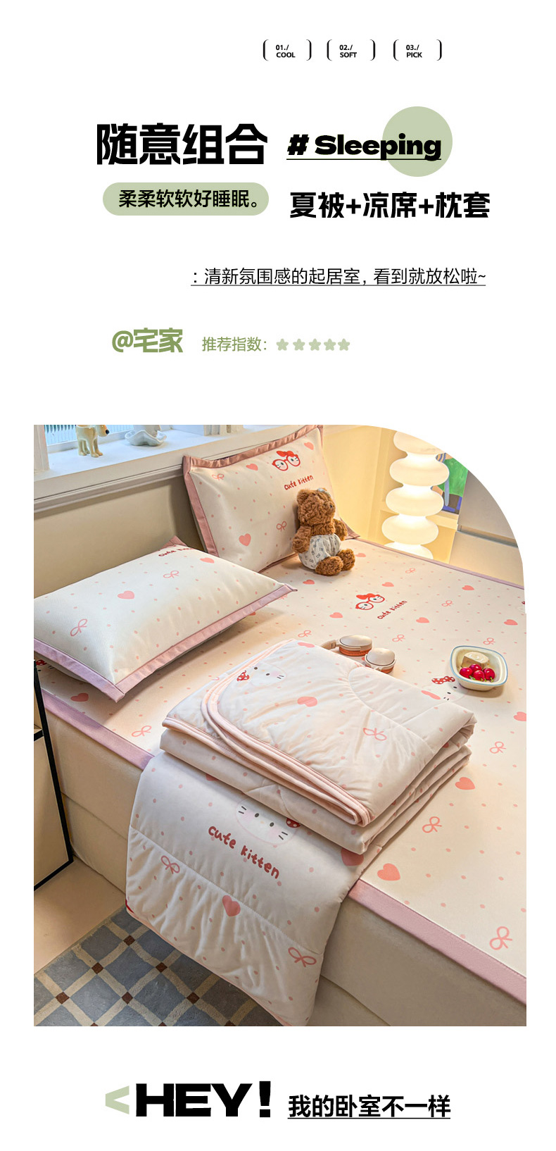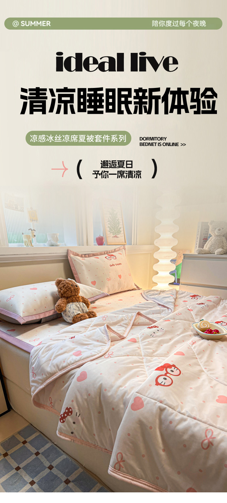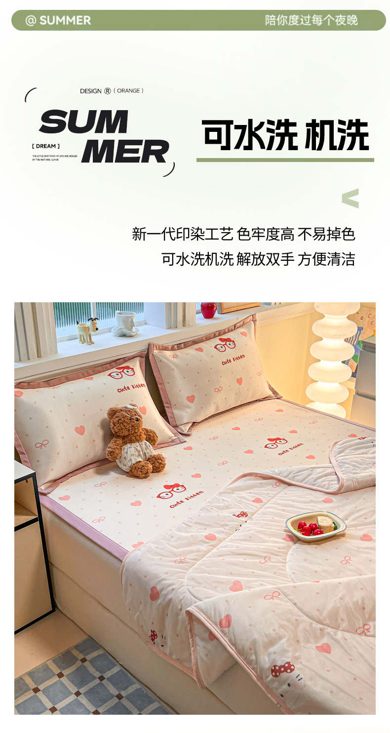 商品名称:女子家纺 2026新款费尔岛风冰丝凉席 甜心凯蒂
