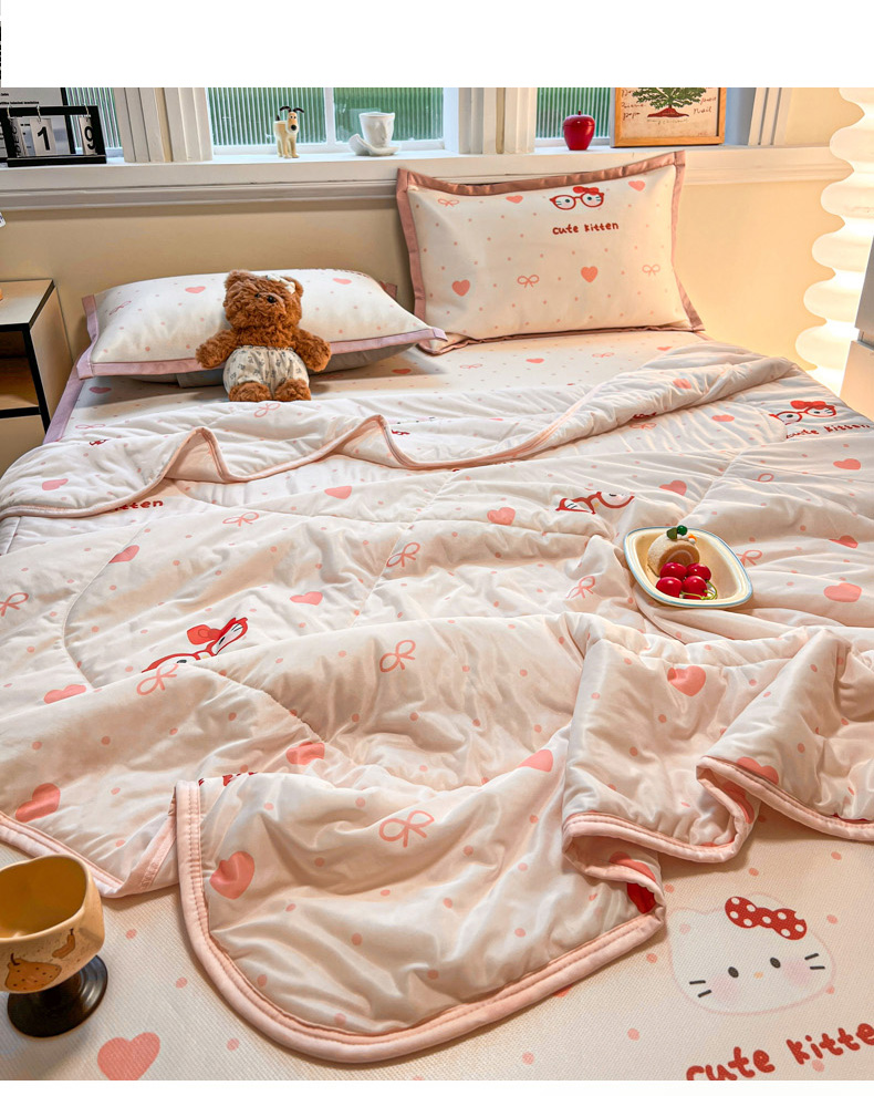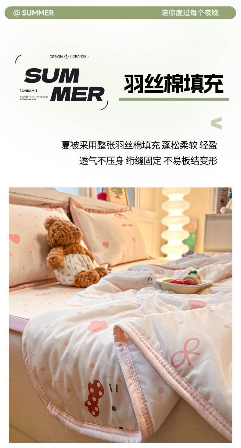(总)女子家纺 2026新款费尔岛风冰丝凉席夏被套件系列,费尔岛马,粉格西高,红调猫咪,蓝兔奶冻,奶咖喵语,甜心凯蒂,夏日海星,叶叶兔眠