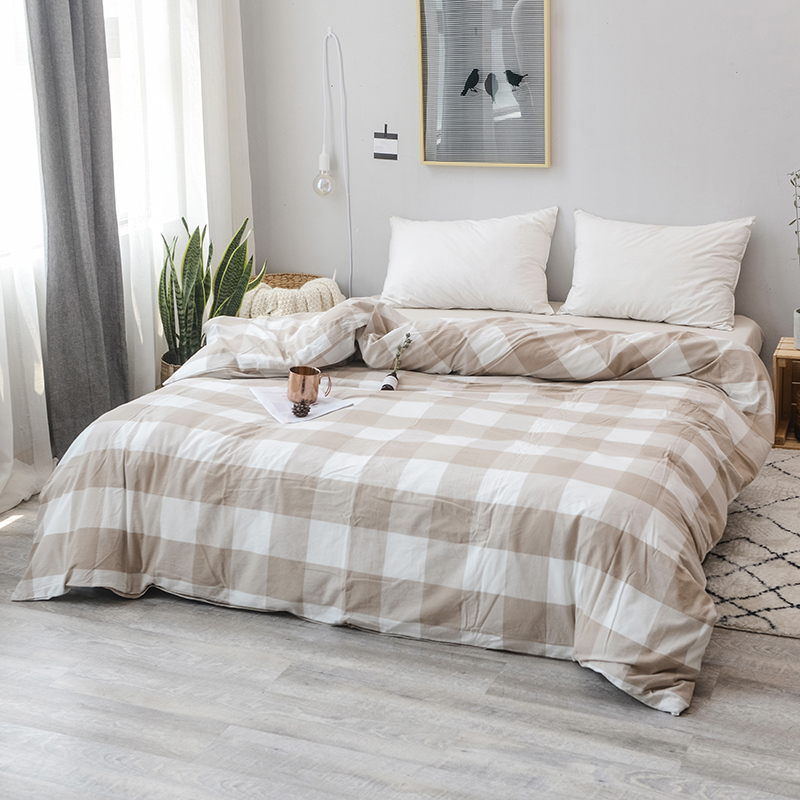柠萌家居 全棉色织水洗棉单被套 咖白中格