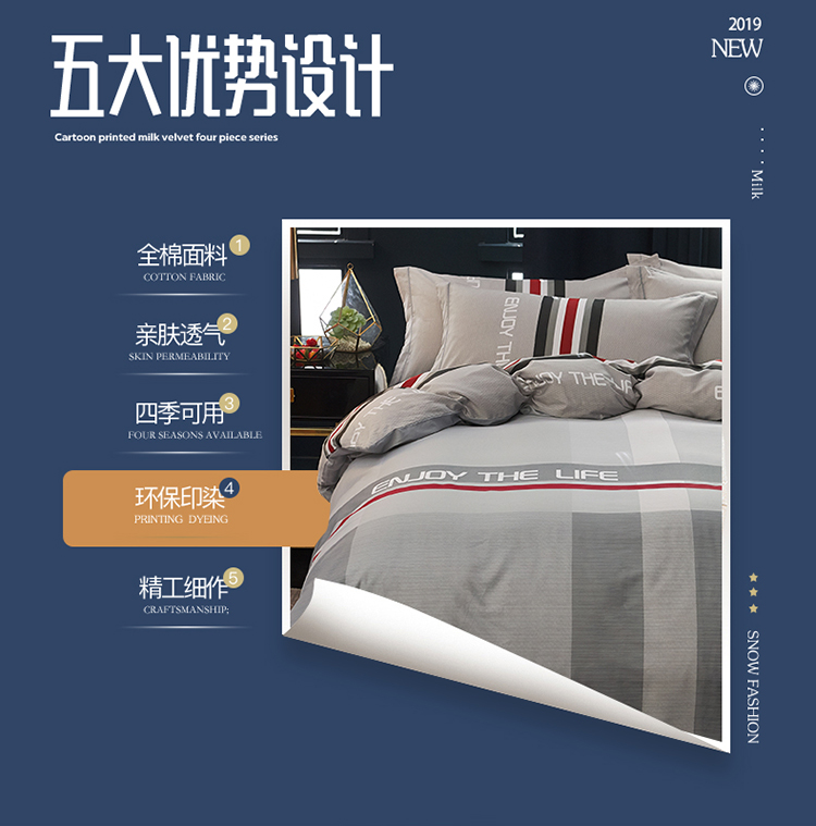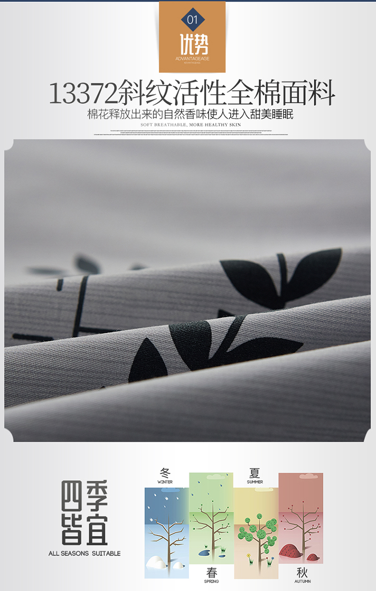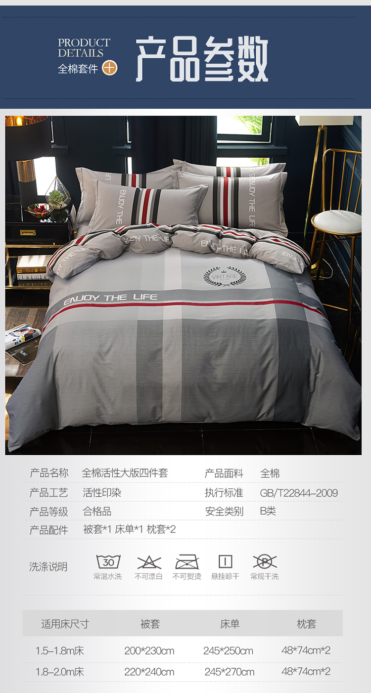 商品名称:雲归梦 2019全棉活性大版简约卡通风格四件套 雅邦