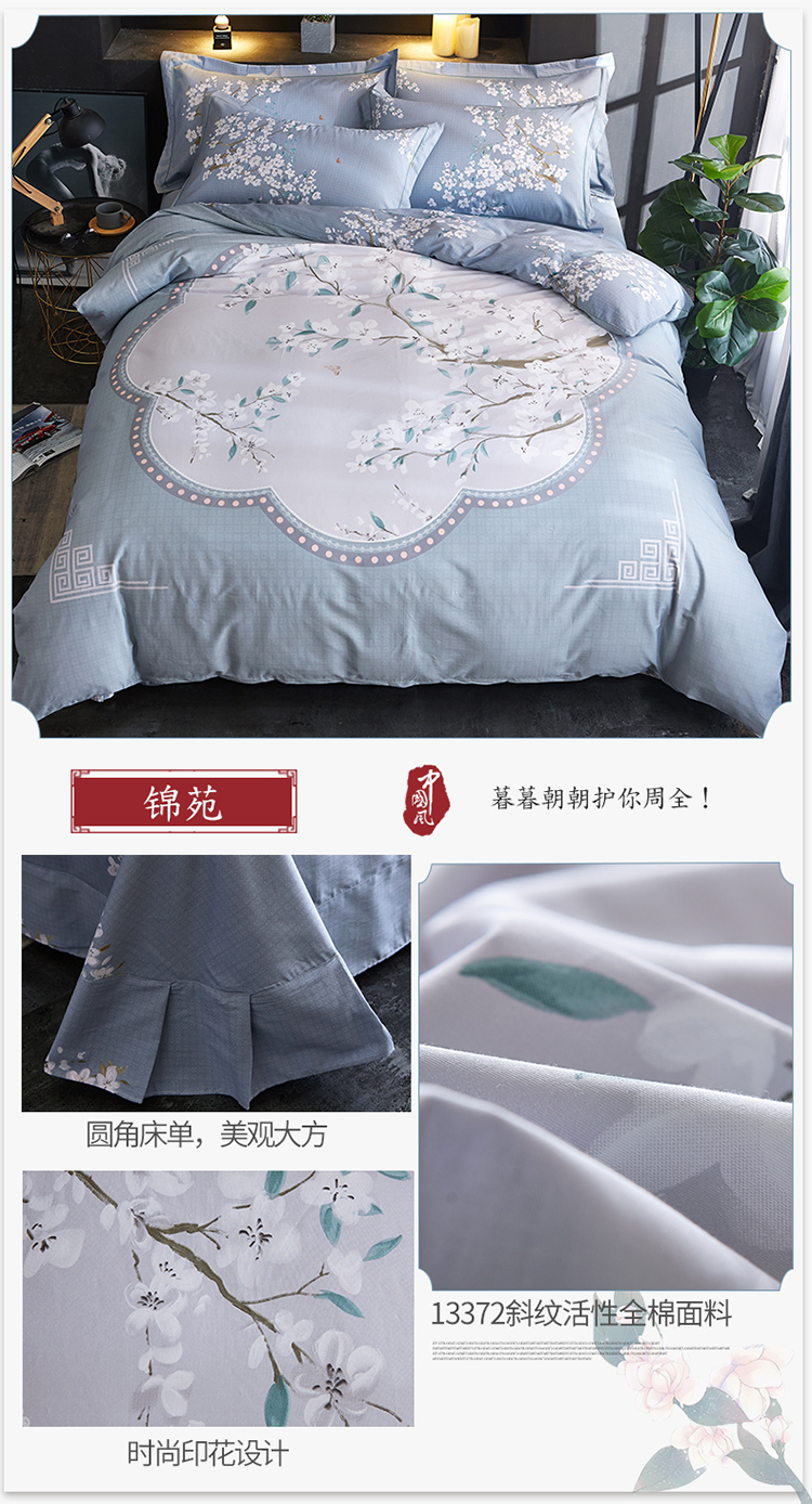 雲归梦 2019全棉活性大版中国风花卉四件套 锦苑