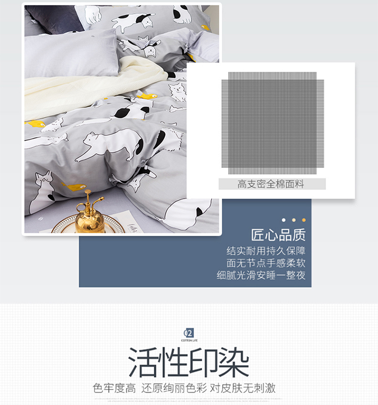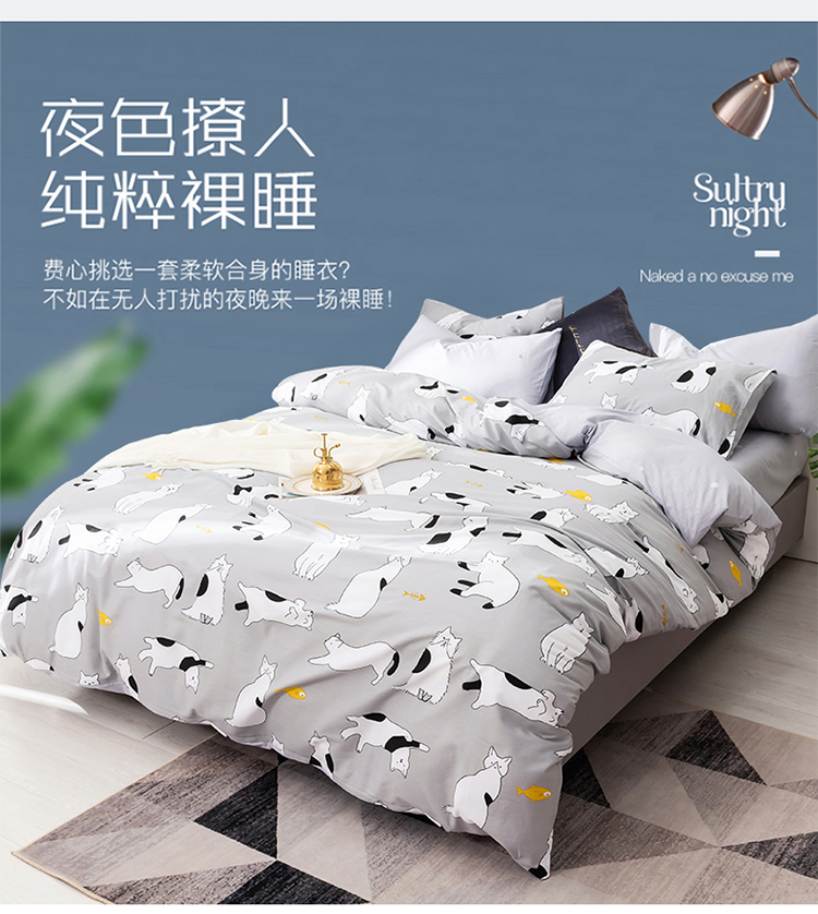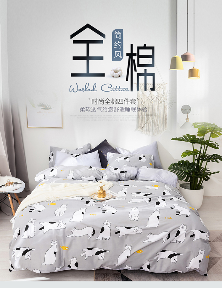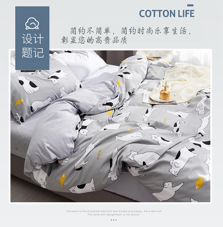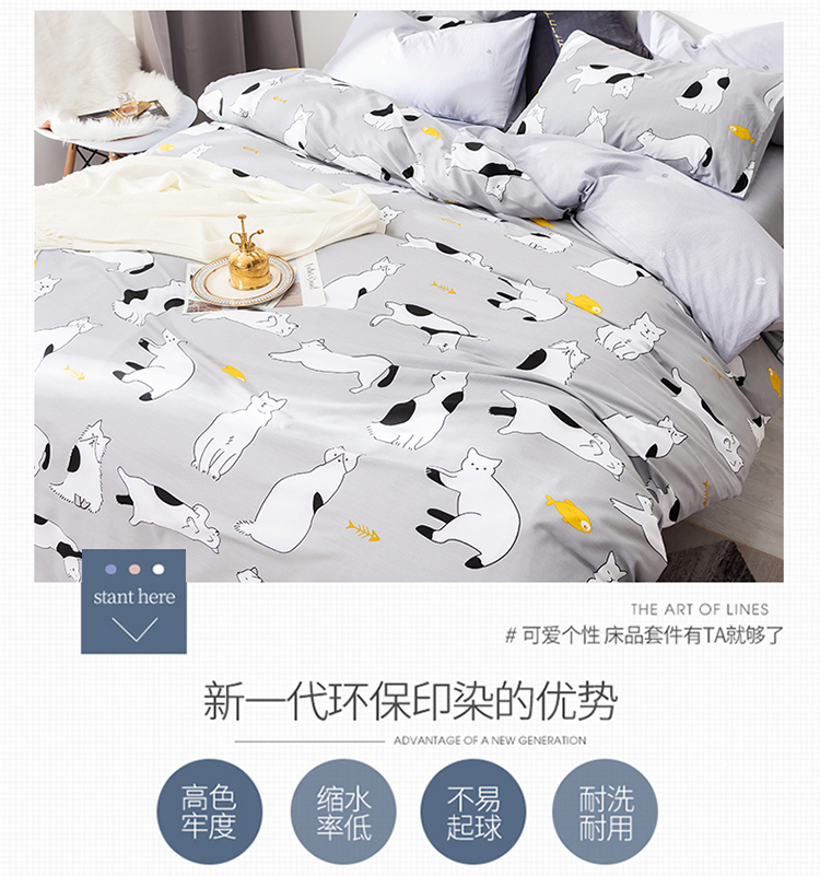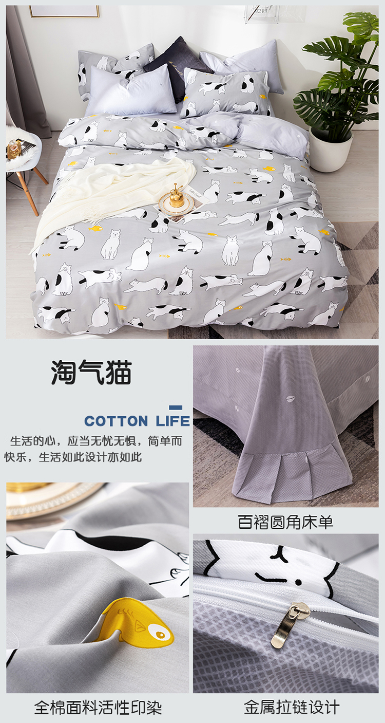 芯贝儿 2019新品小清新系纯m四件套 淘气猫