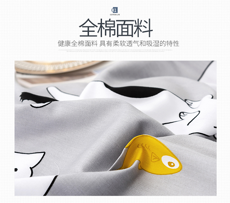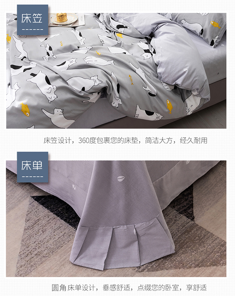商品名称:芯贝儿 2019新品小清新系纯m四件套 淘气猫