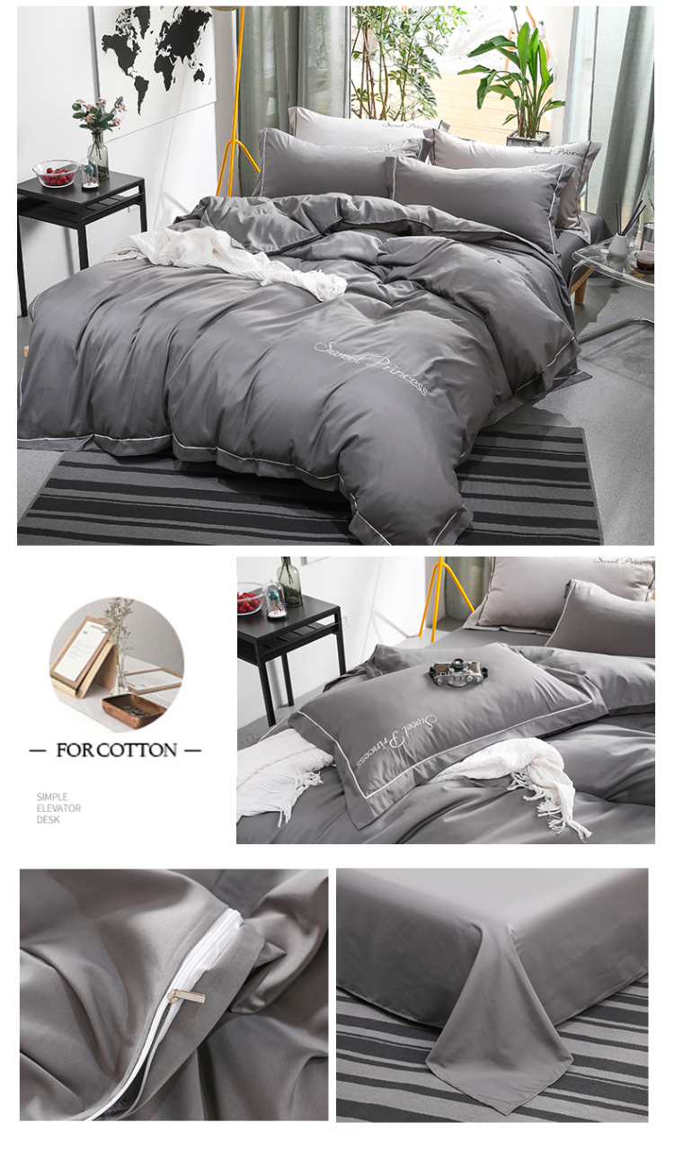 (总)骏腾 2022简爱水洗天丝绣花四件套水洗真丝三件套,宝蓝,湖蓝,酒红,墨绿,深灰,银灰,玉色