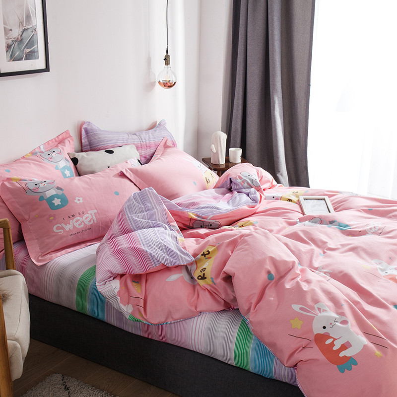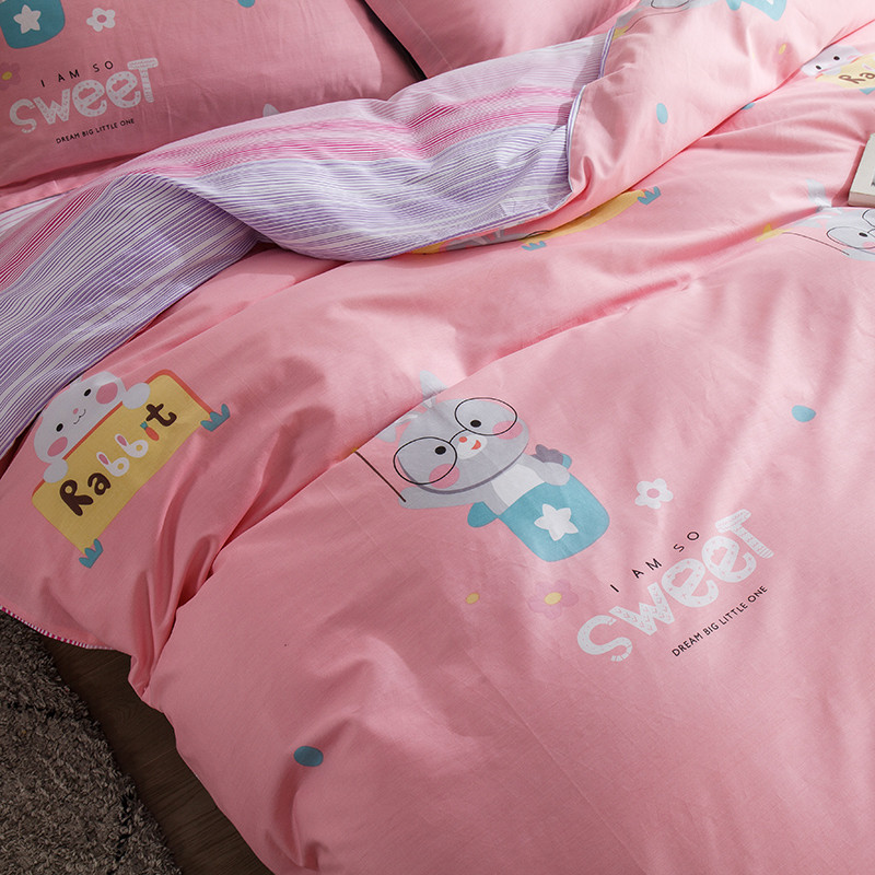 芃成 2020新款洛卡全棉12868单被套 可爱萌兔粉