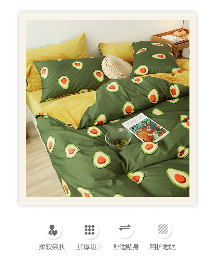 (总)昔可 2019新款13372棉加绒水果系列四件套