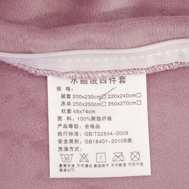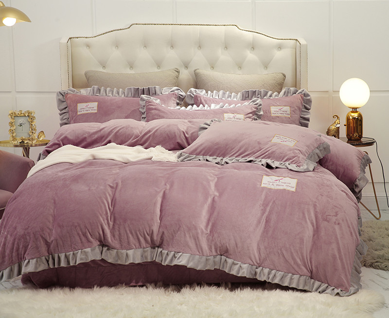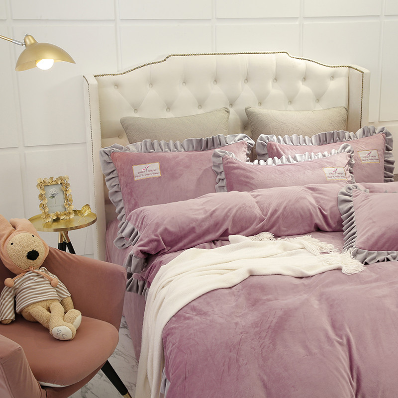 商品名称:米奈 水晶绒贴布绣花四件套米可系列 紫粉