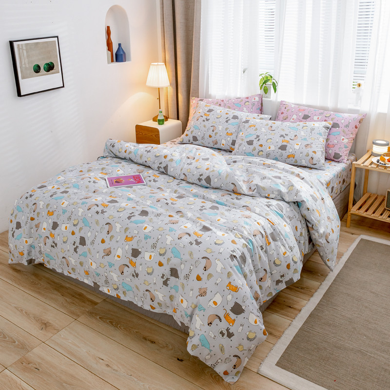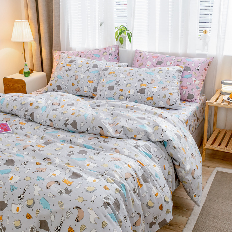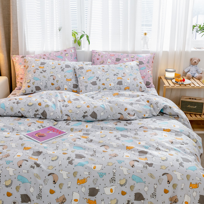 商品名称:沐棉家居 2019新款13370全棉小碎花四件套棚拍 小伙伴-灰