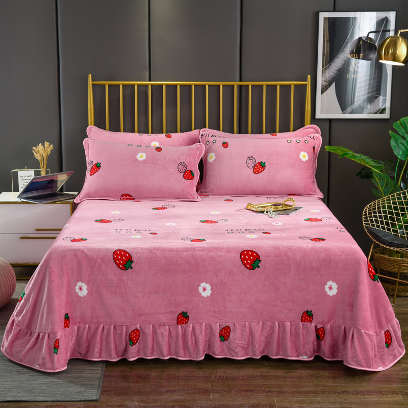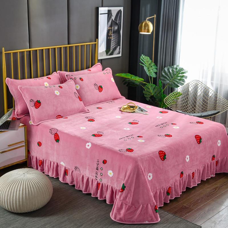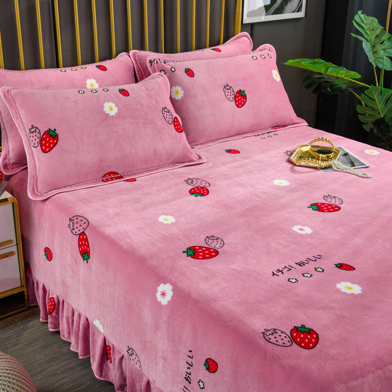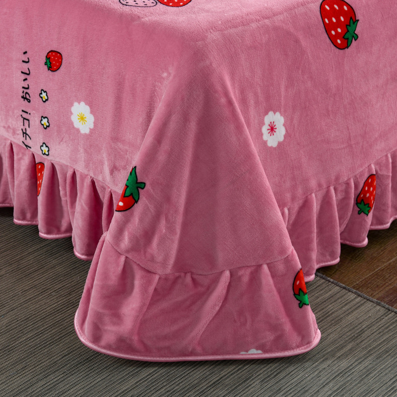 雨洋家纺 2025新款加厚金貂绒床裙床盖 草莓