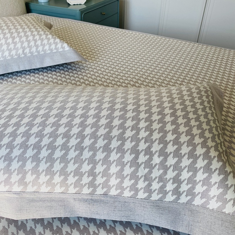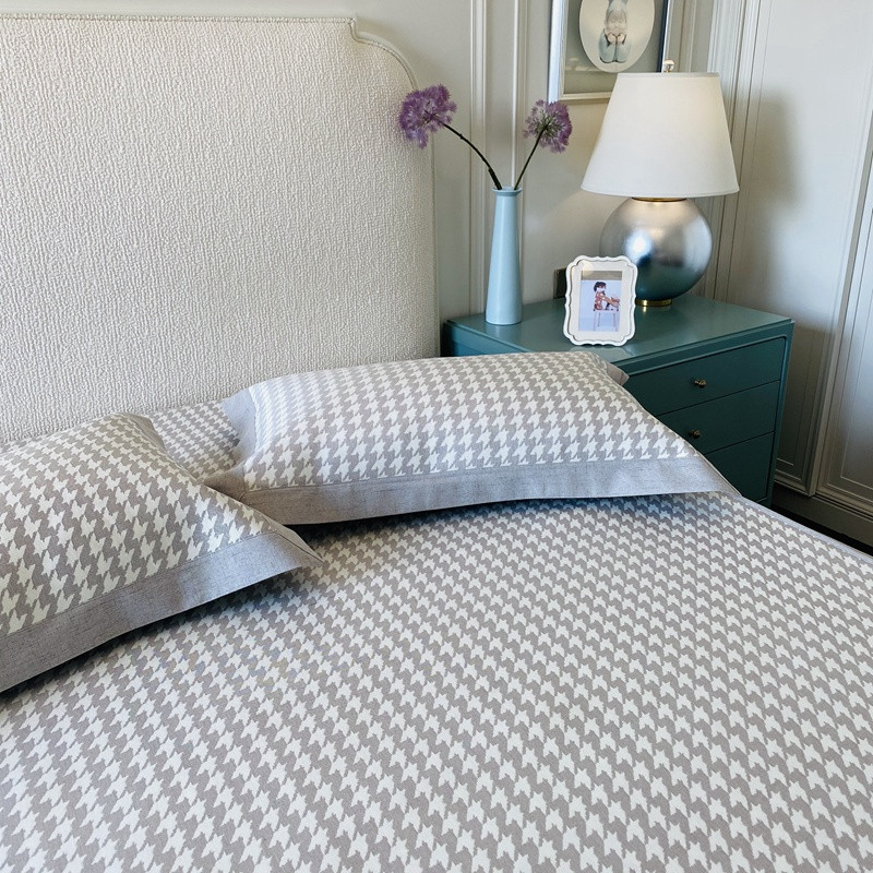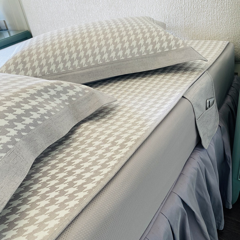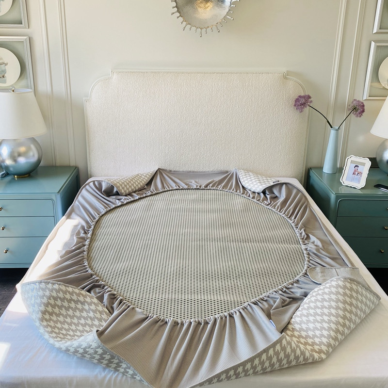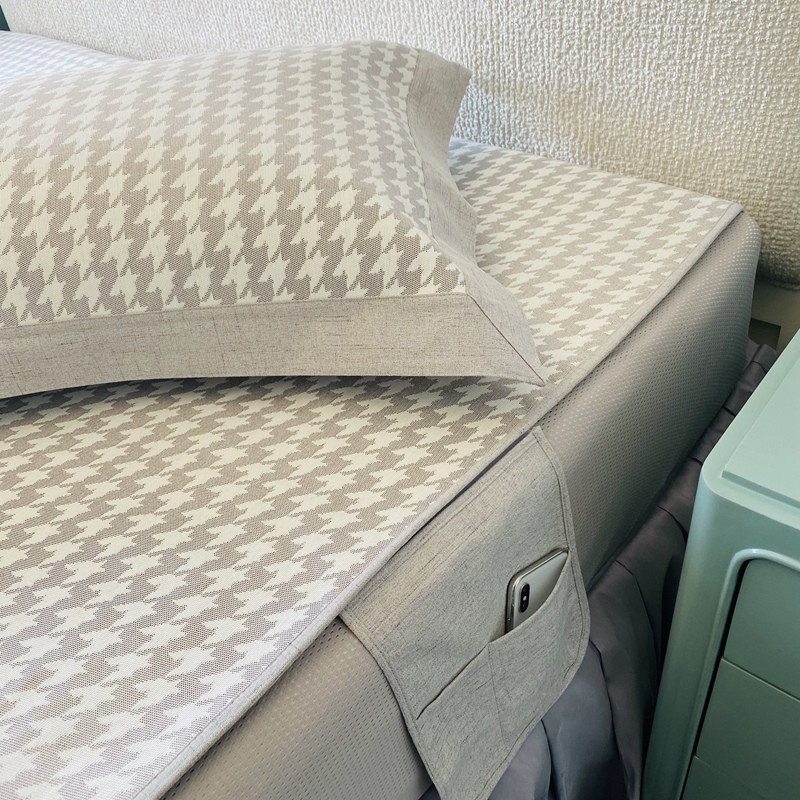 本希 2020可水洗冰丝凉席提花床笠系列实拍图千鸟格床笠-灰