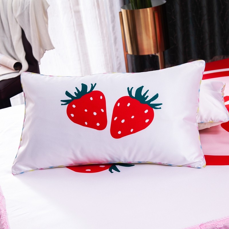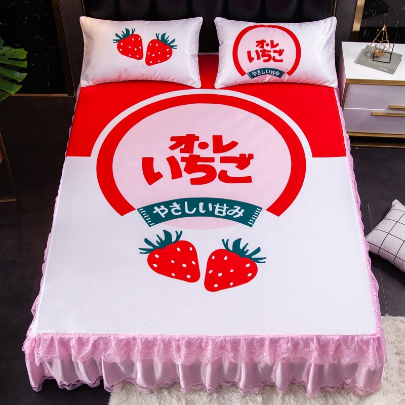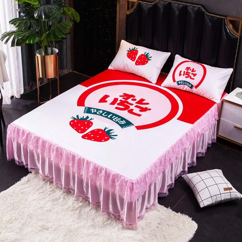 纽缦 2020新款冰丝大版床裙三件套 草莓味