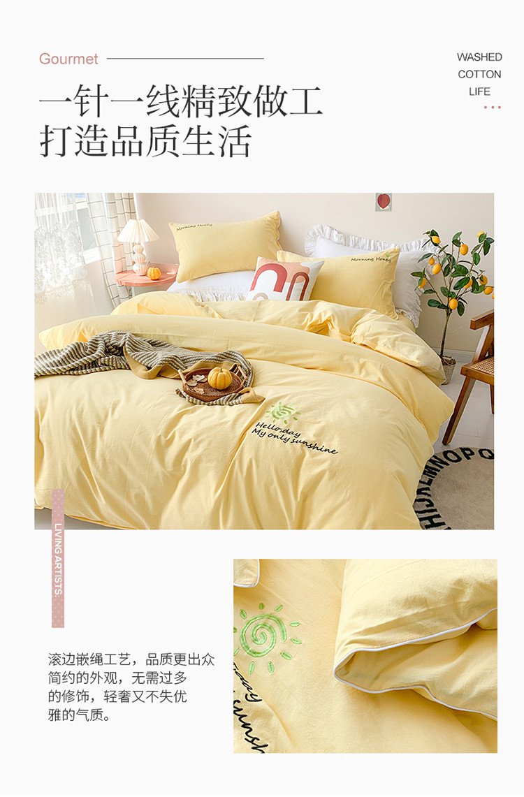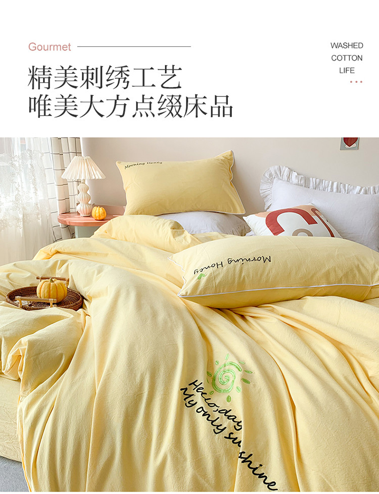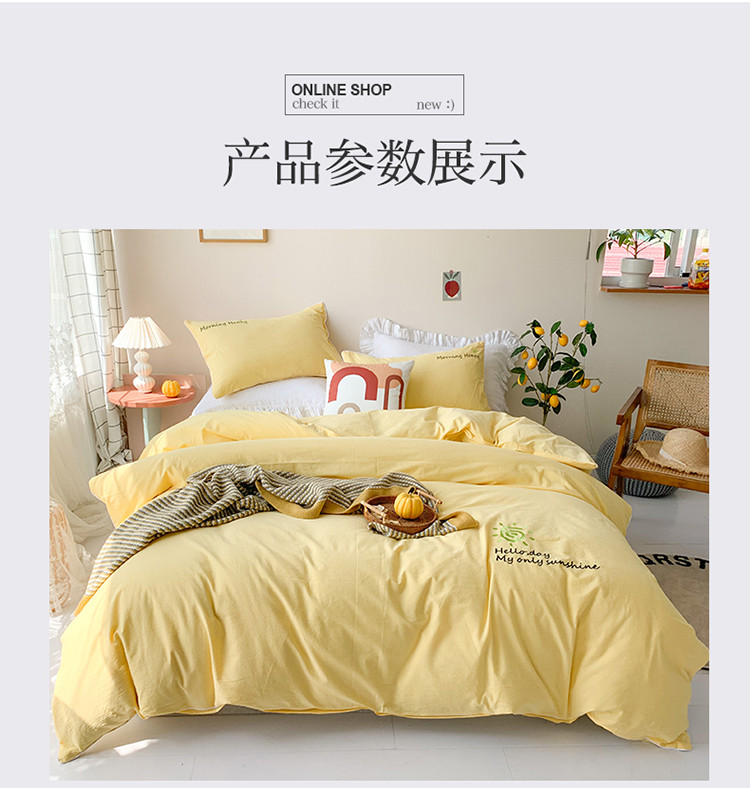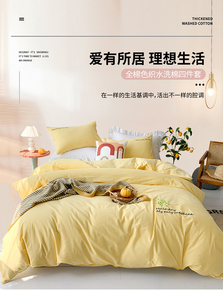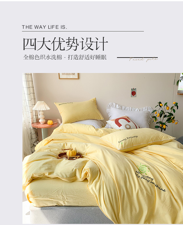 商品名称:玛奇朵 2021新品刺绣款纯棉色织水洗棉四件套 嫩黄
