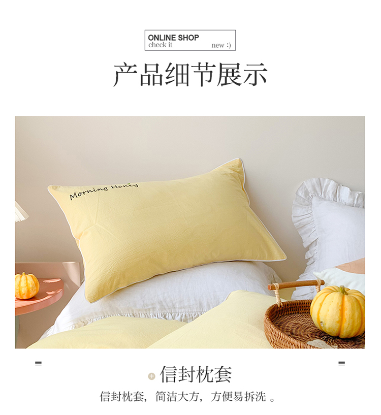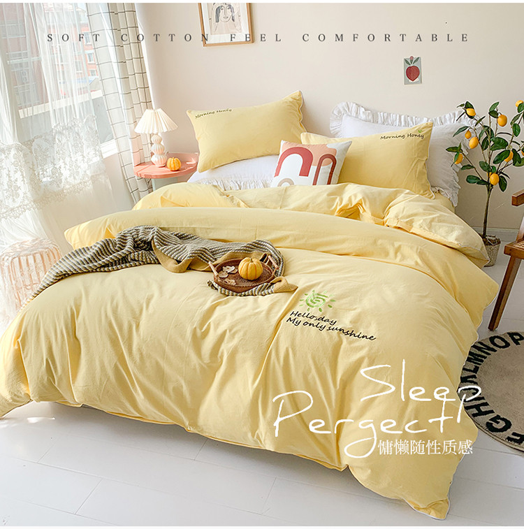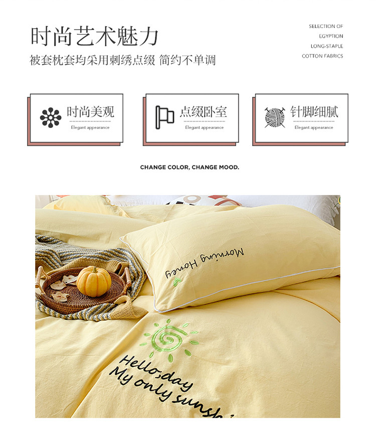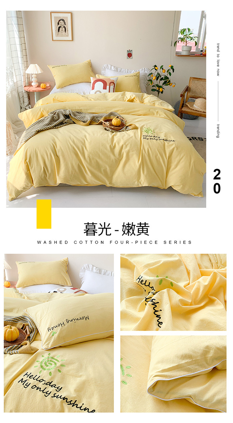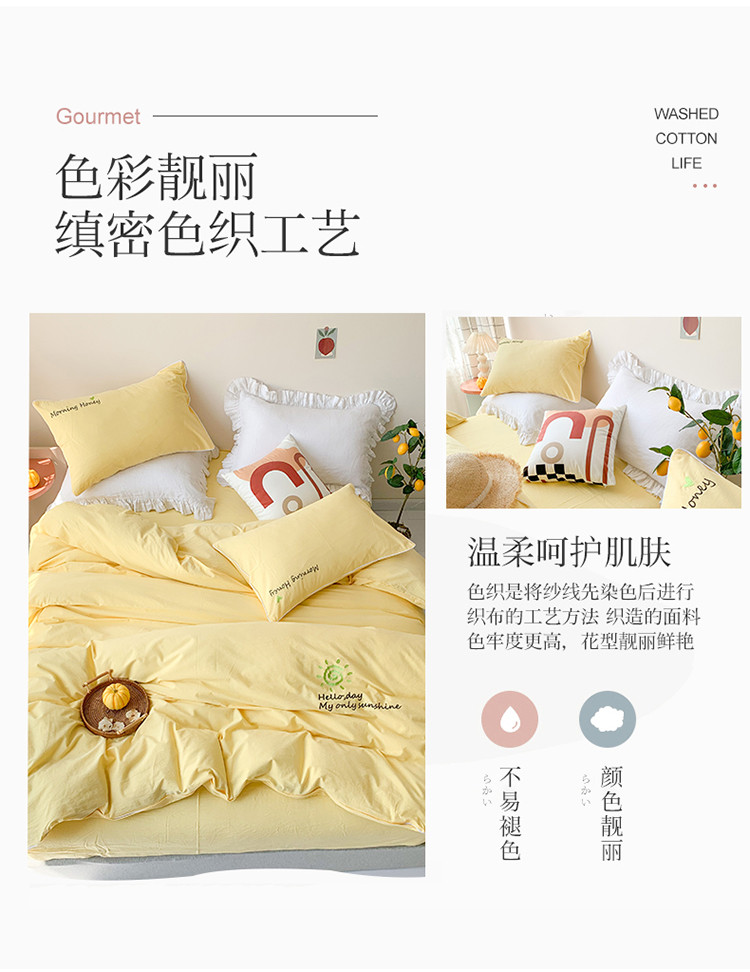 商品名称:玛奇朵 2021新品刺绣款纯棉色织水洗棉四件套 嫩黄