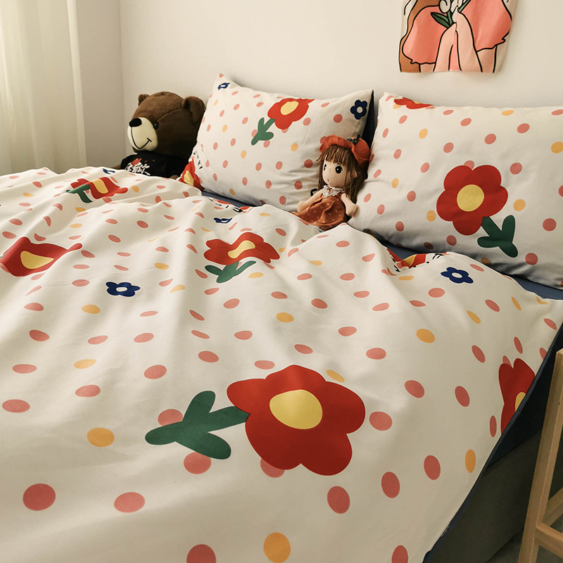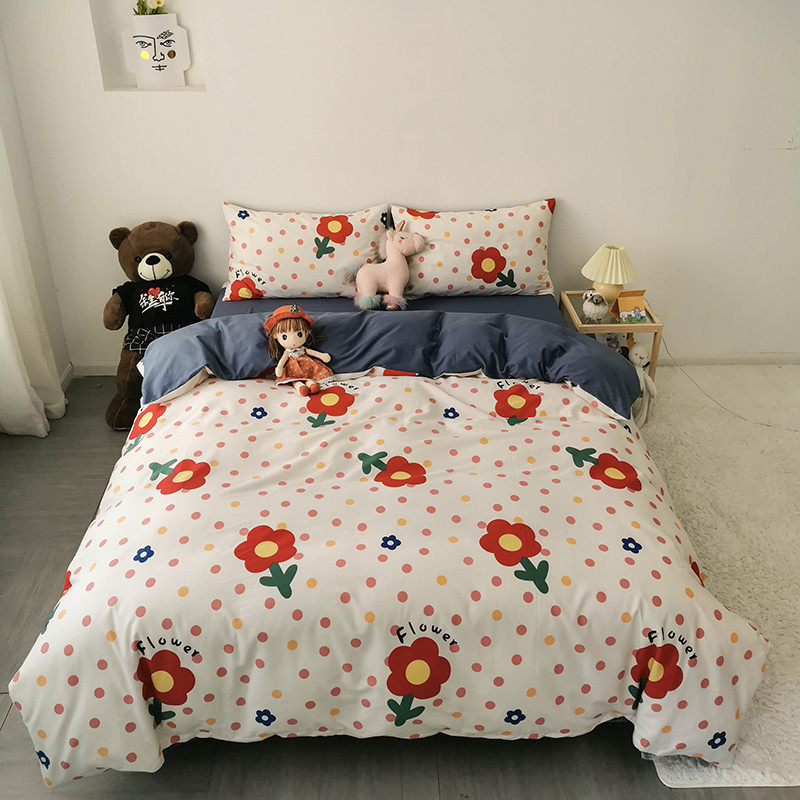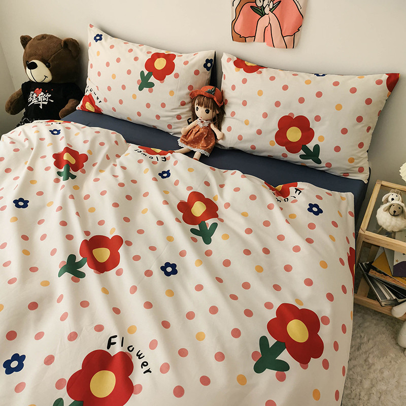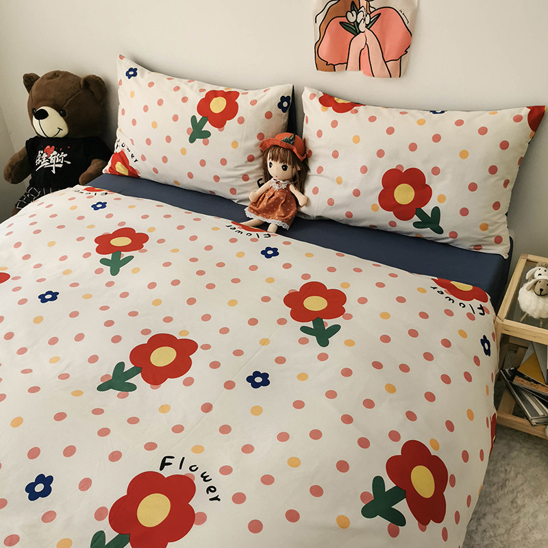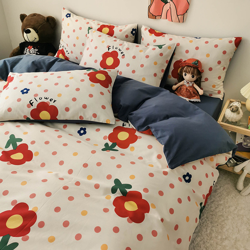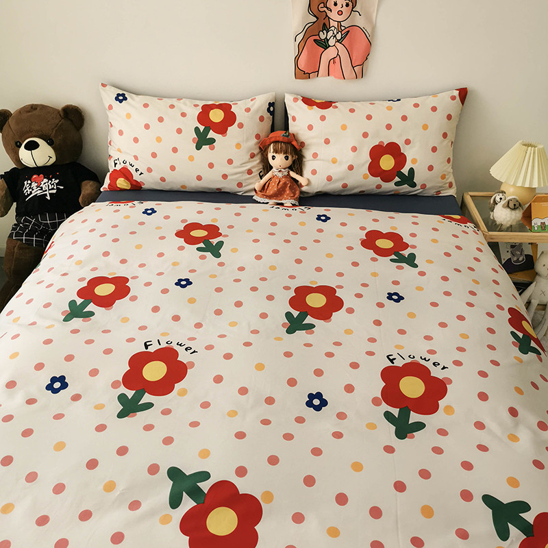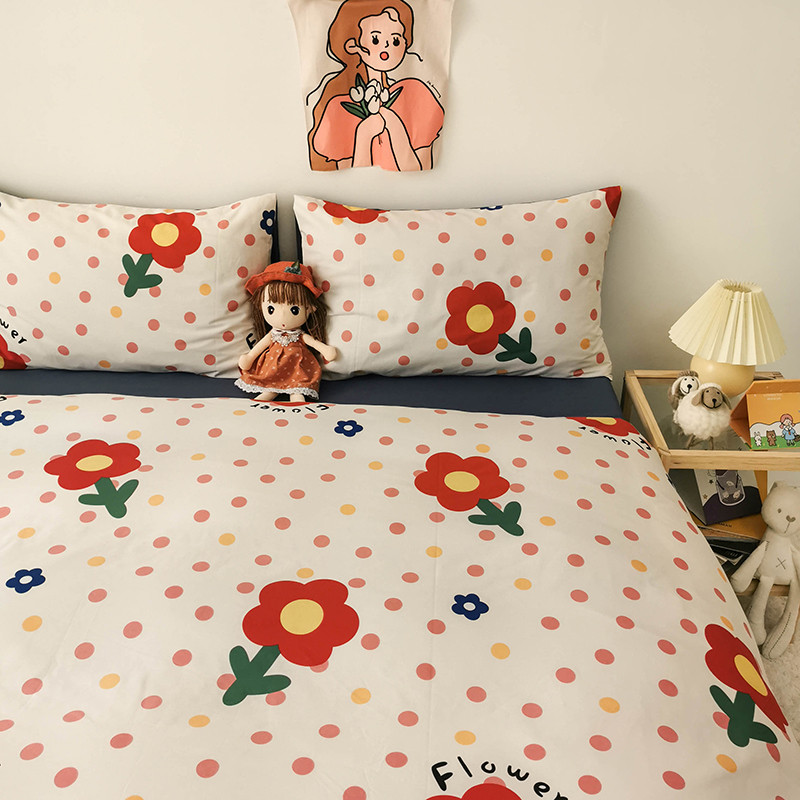 商品名称:HL原创 2020新款13372全棉小清新四件套实拍图 小红花