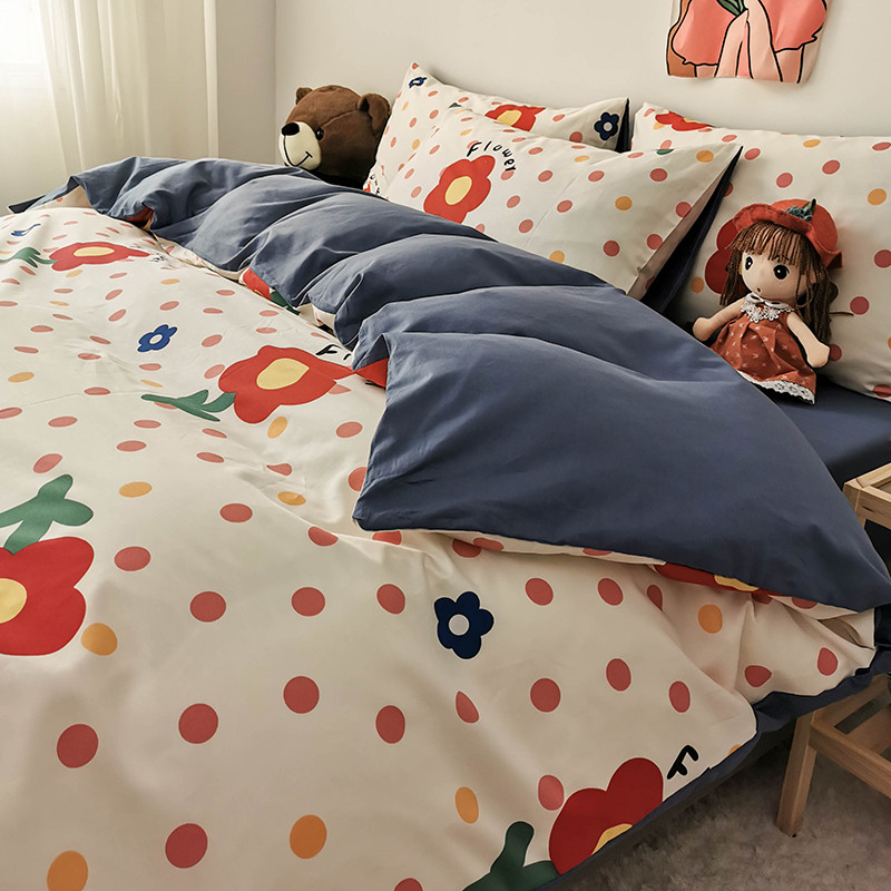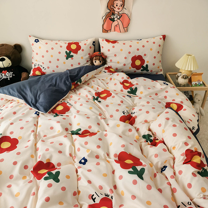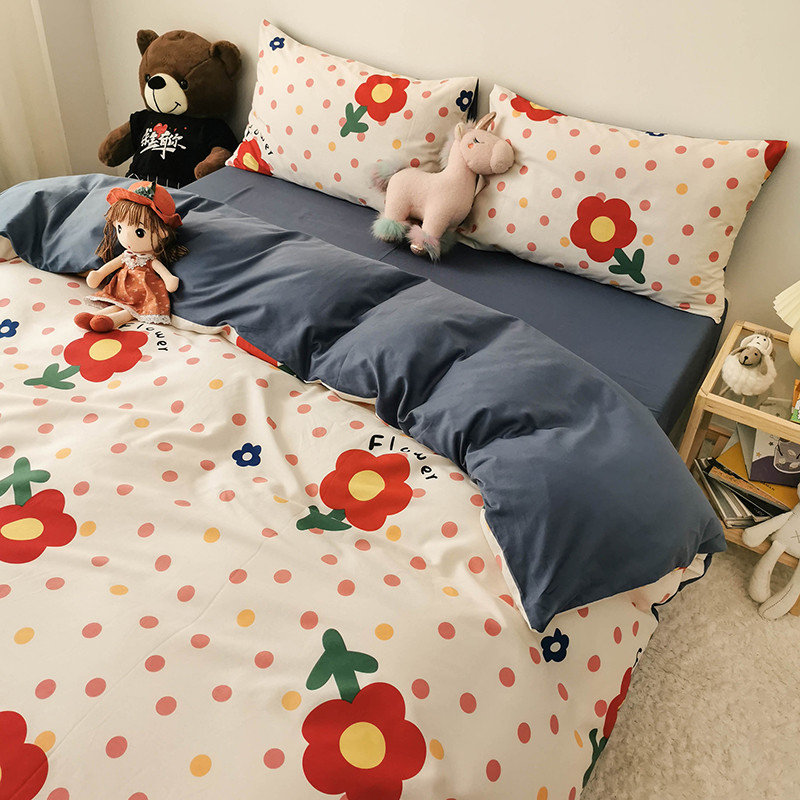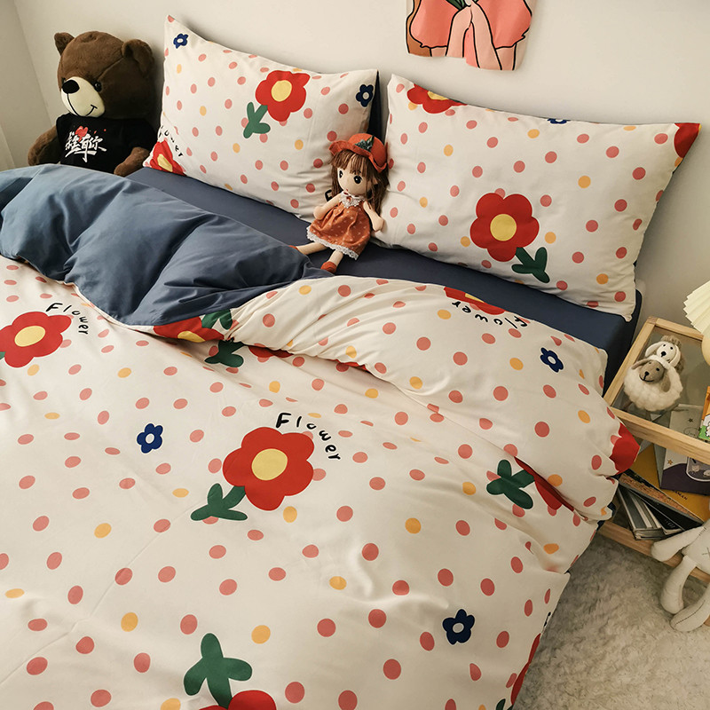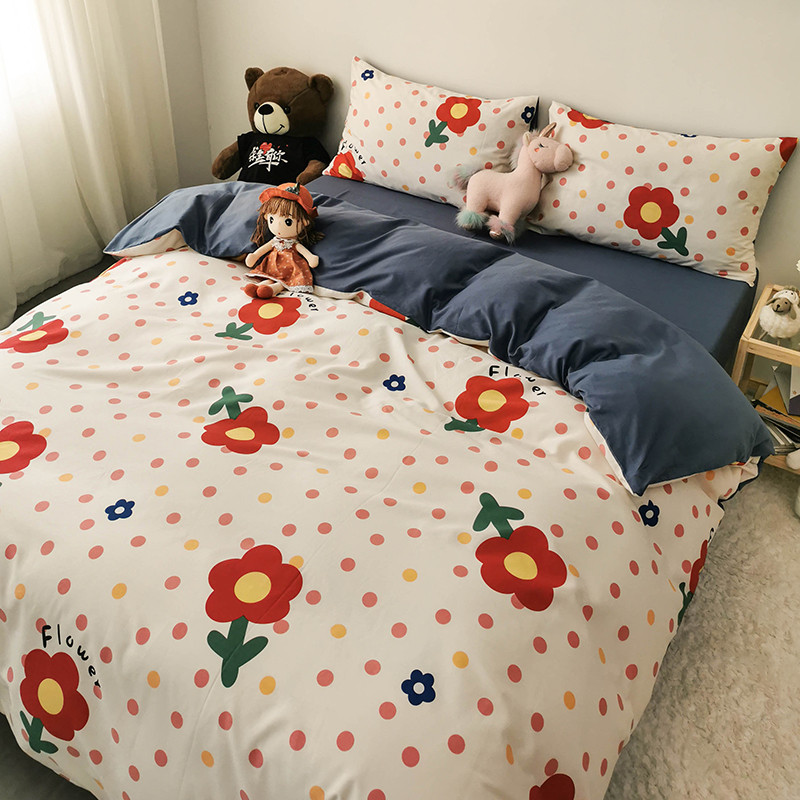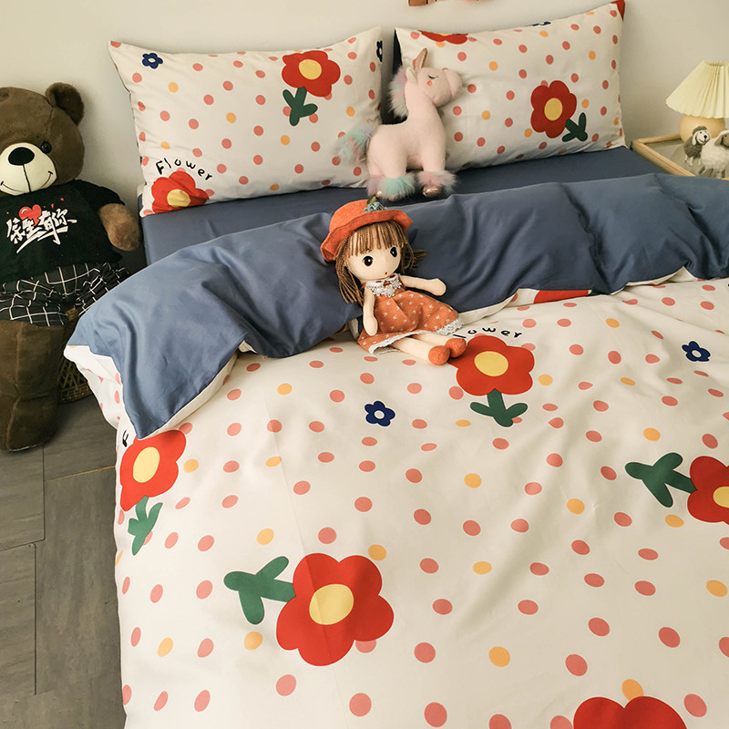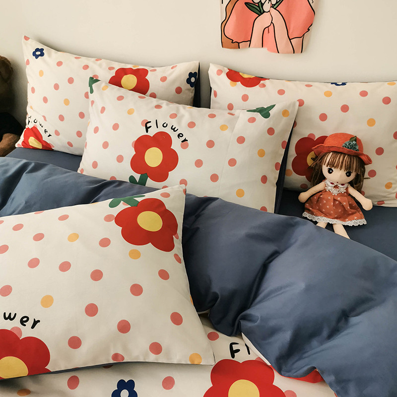 商品名称:HL原创 2020新款13372全棉小清新四件套实拍图 小红花