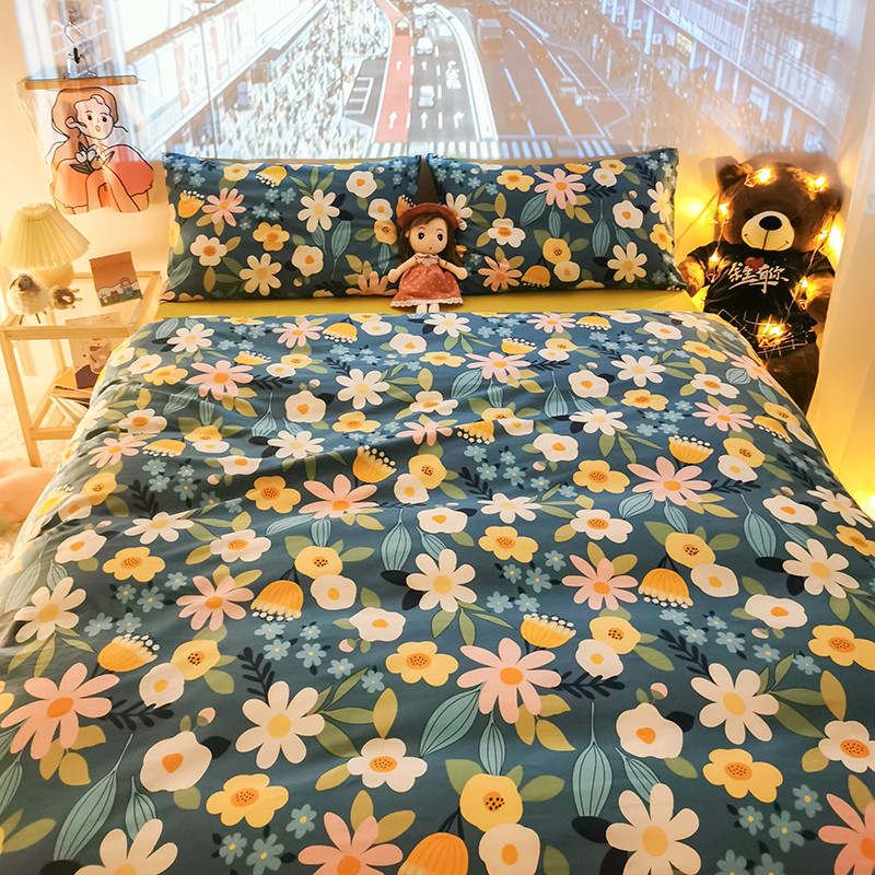 商品名称:HL原创新款13372全棉四件套夜晚网红风实拍图 卉语