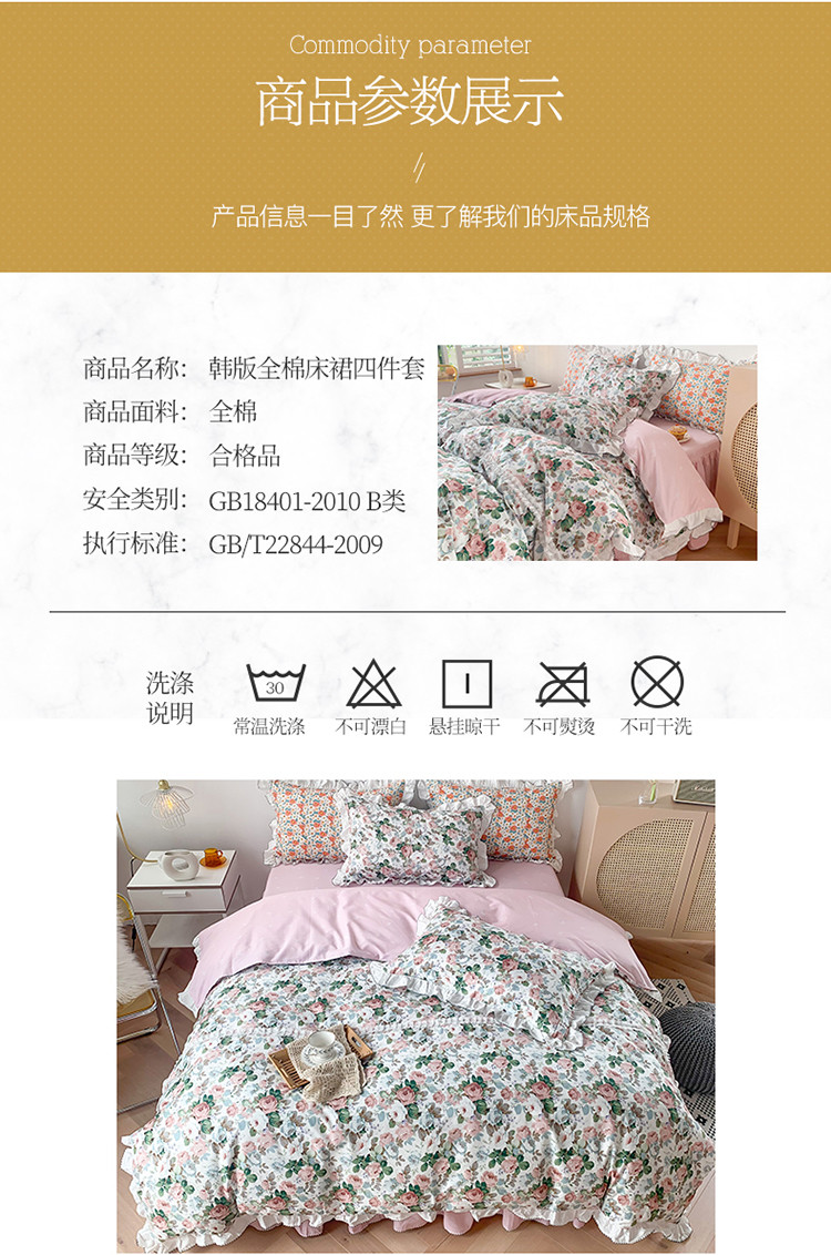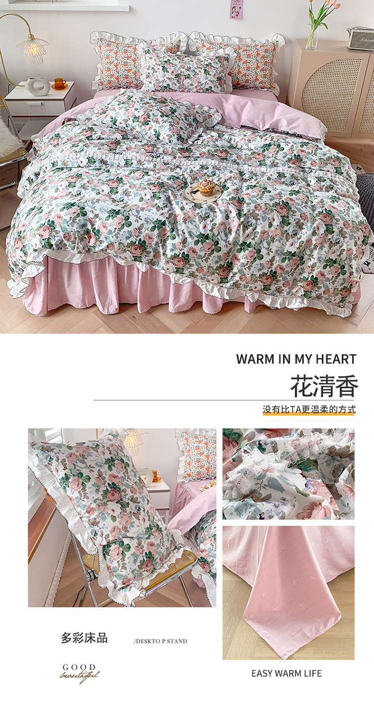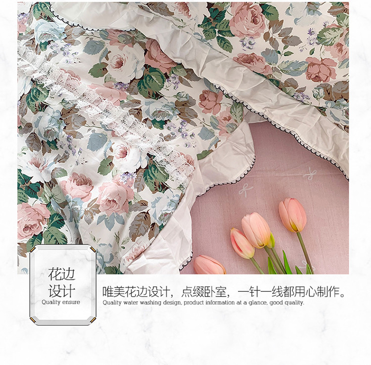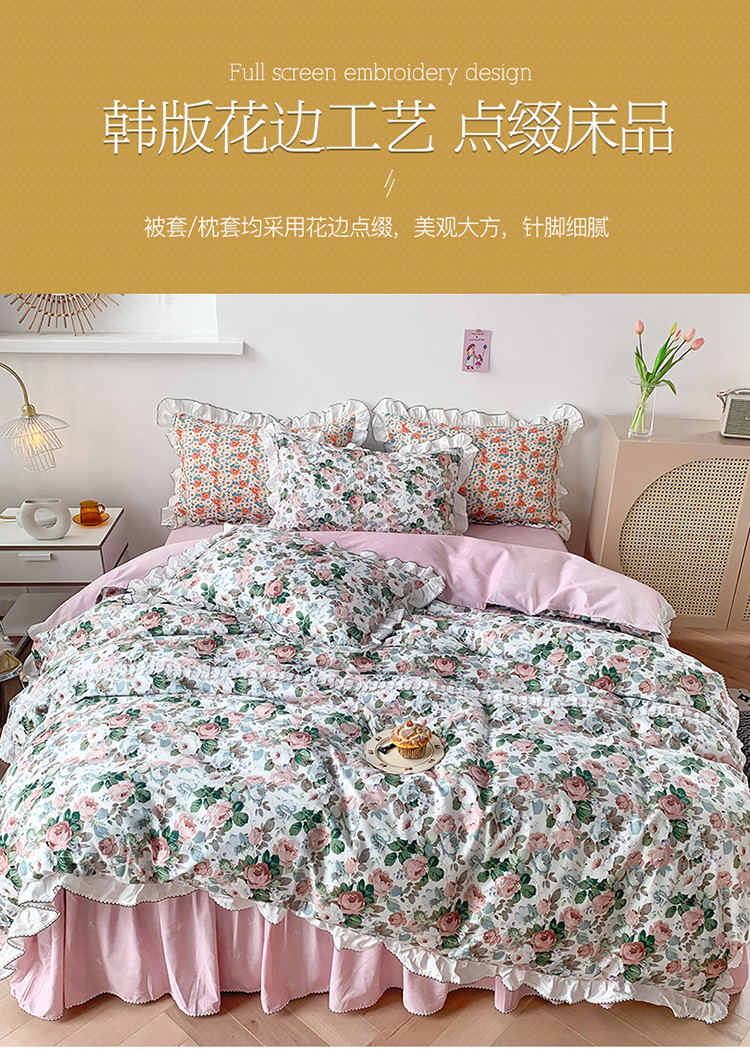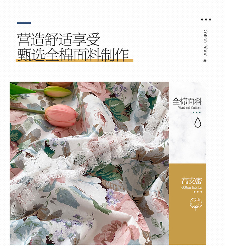 当前位置: 91家纺网 > 商品网购 > 床品套件 > 四件套 > 全棉普通四件套 > 婳庭 2020新款韩版复古油画蕾丝款全棉床裙四件套 花清香