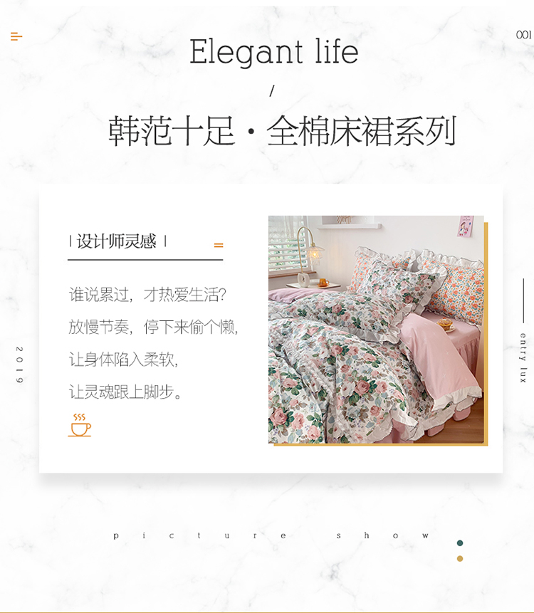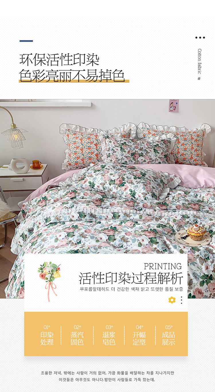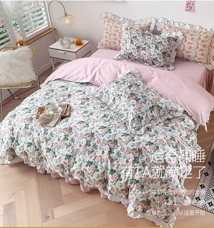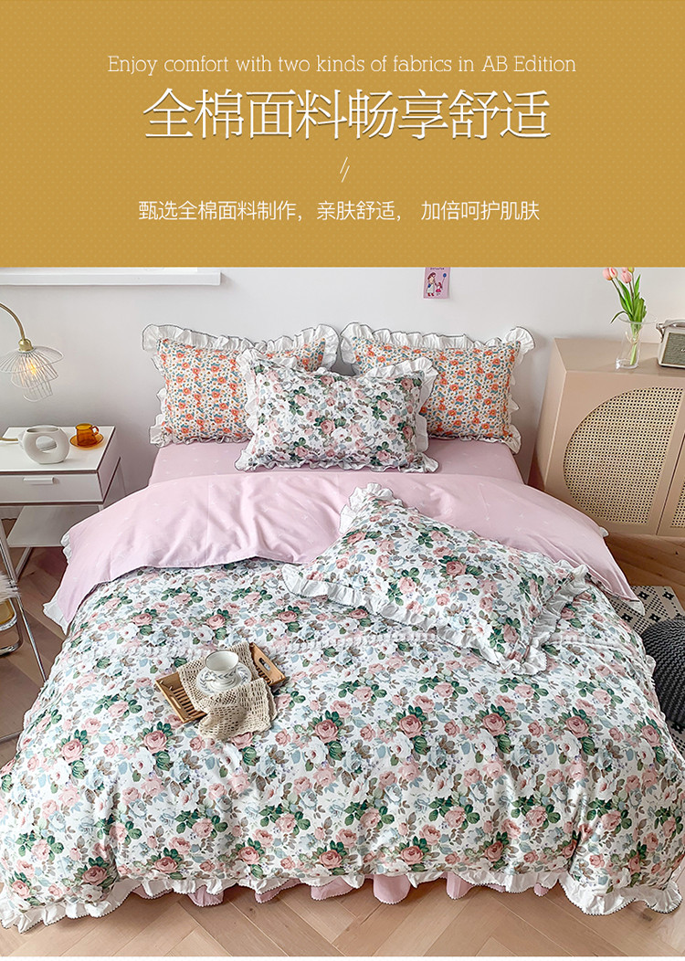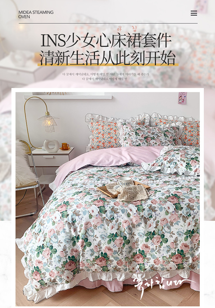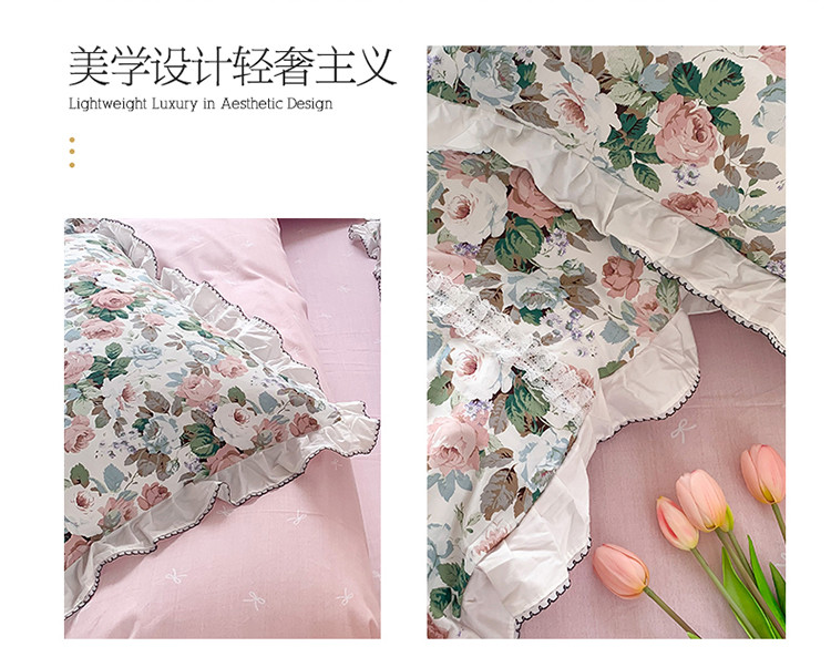 当前位置: 91家纺网 > 商品网购 > 床品套件 > 四件套 > 全棉普通四件套 > 婳庭 2020新款韩版复古油画蕾丝款全棉床裙四件套 花清香
