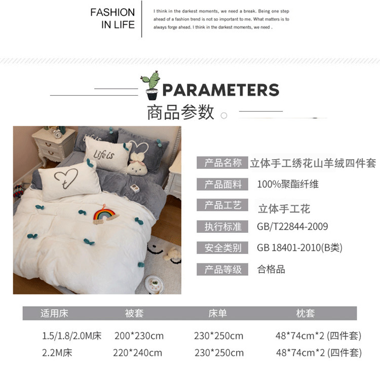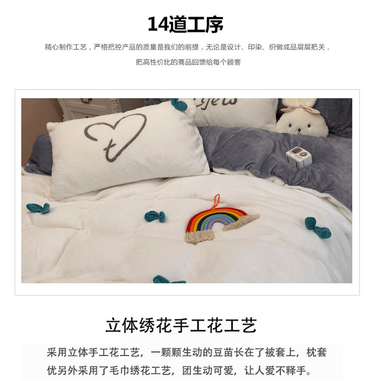 当前位置: 91家纺网 > 商品网购 > 床品套件 > 四件套 > 山羊绒四件套 > 三朵2020新款立体手工绣花山羊绒四件套 豆苗白加灰