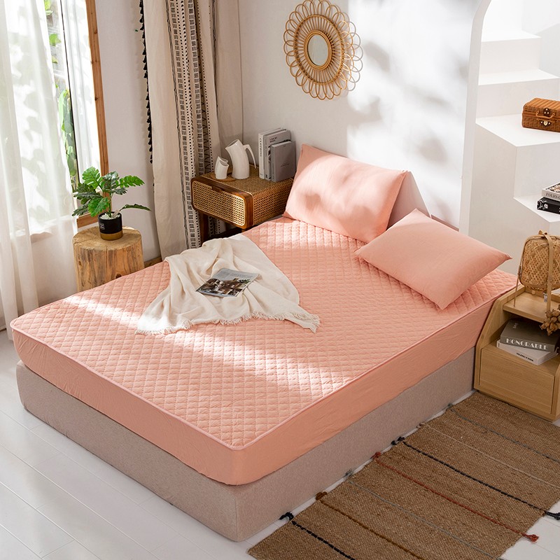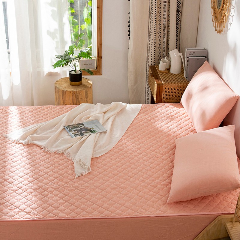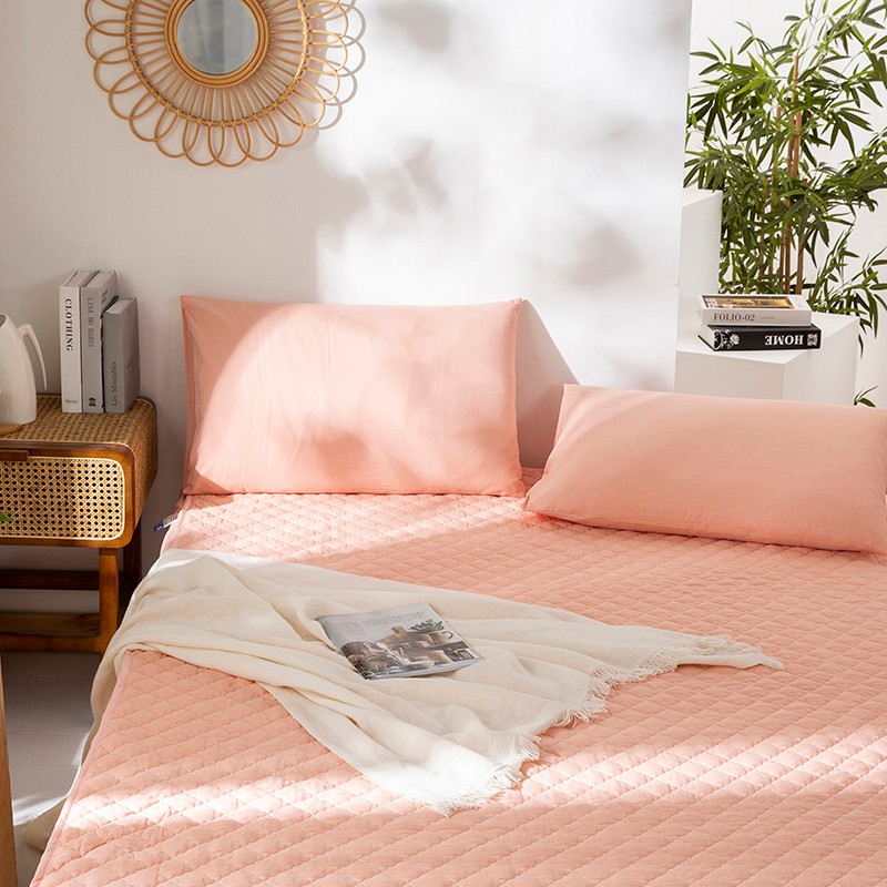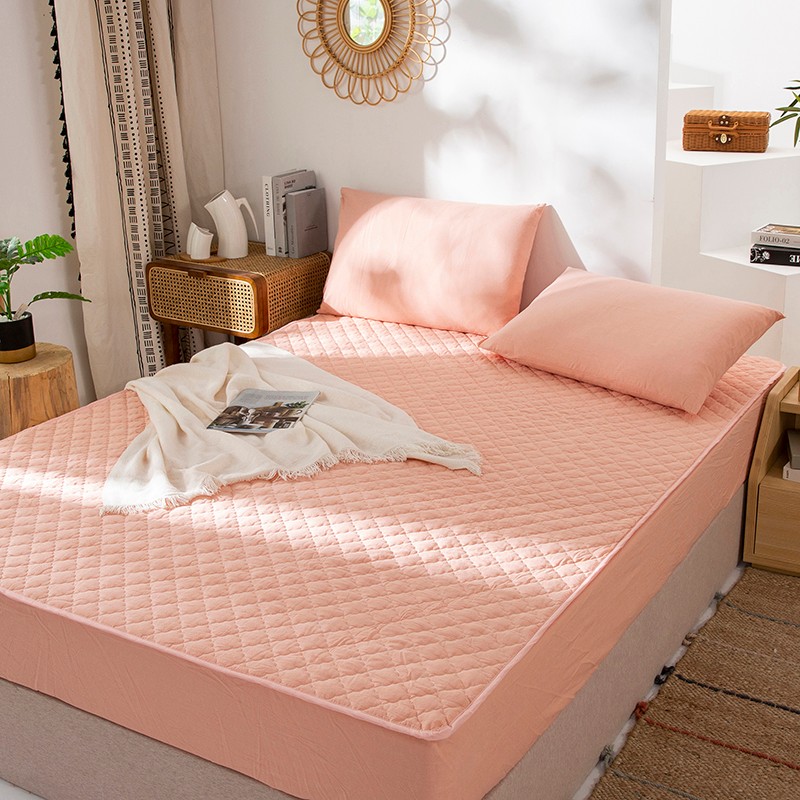 久典 2023新款全棉色织水洗棉夹棉床笠 玉粉