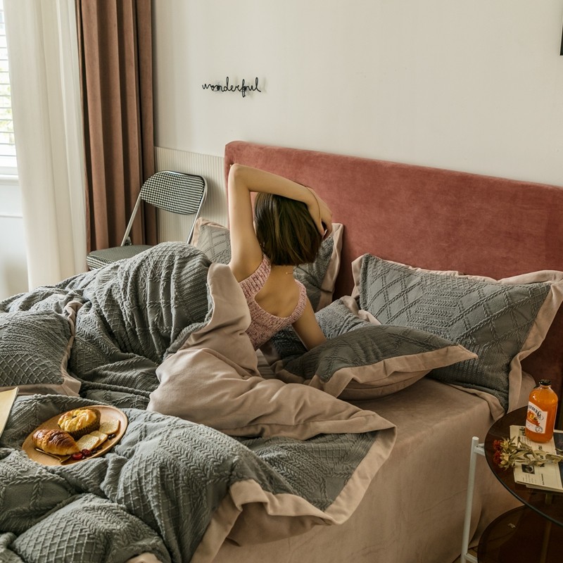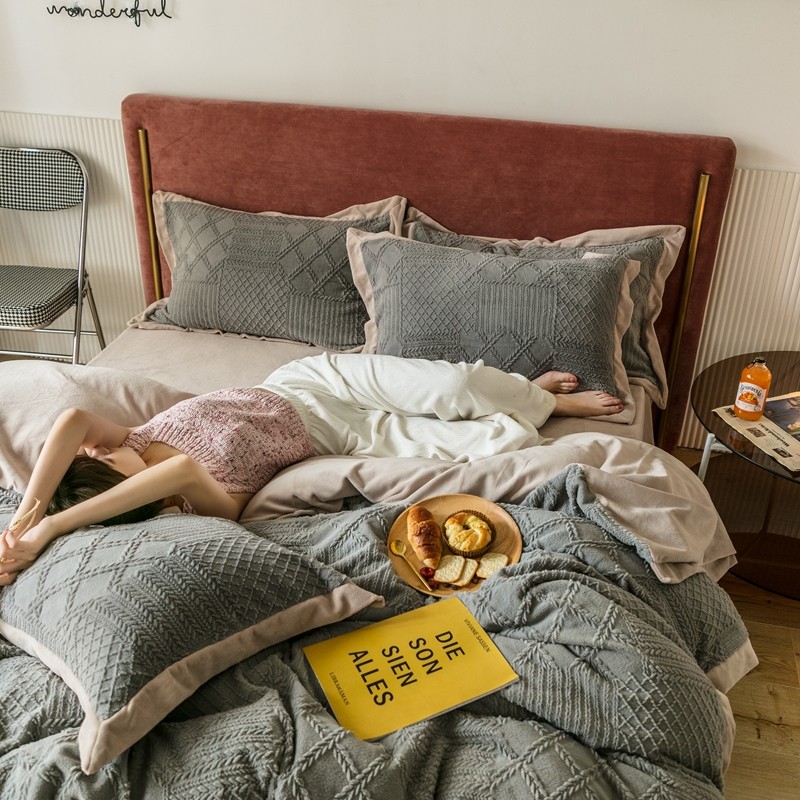 馨蕊家居 2021新款秋冬轻奢煦暖绒四件套 唯爱-高级灰