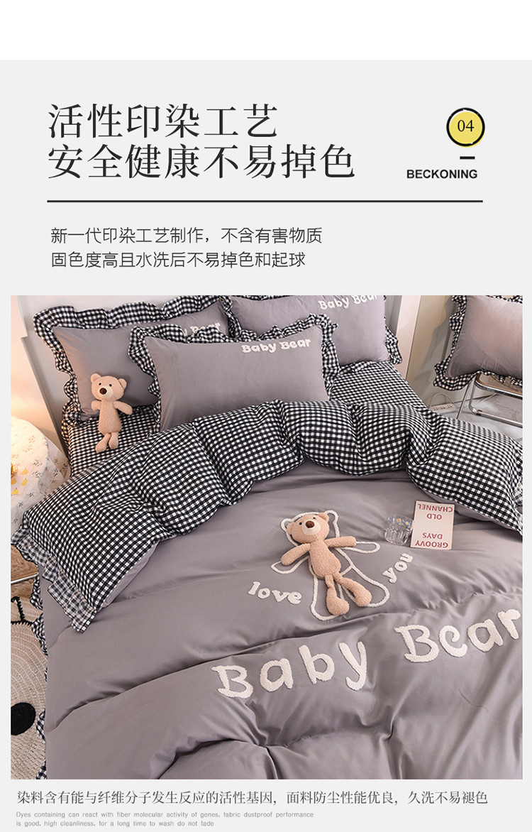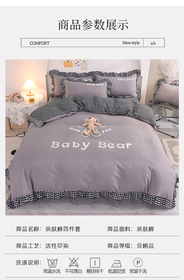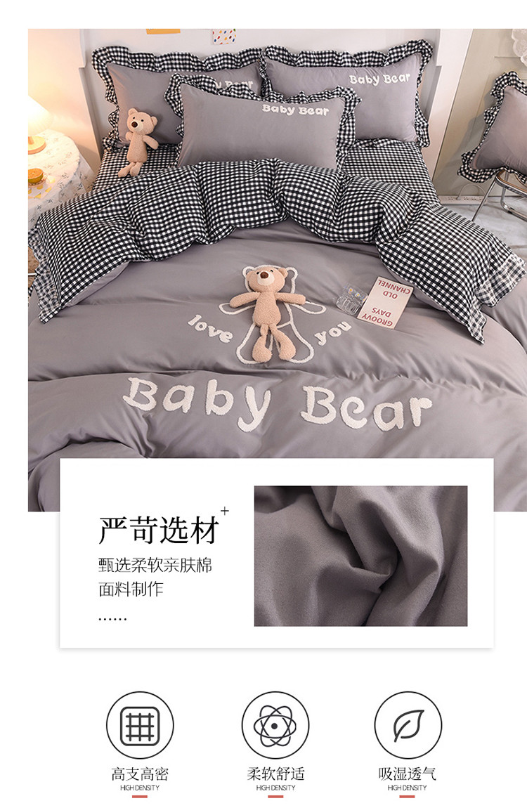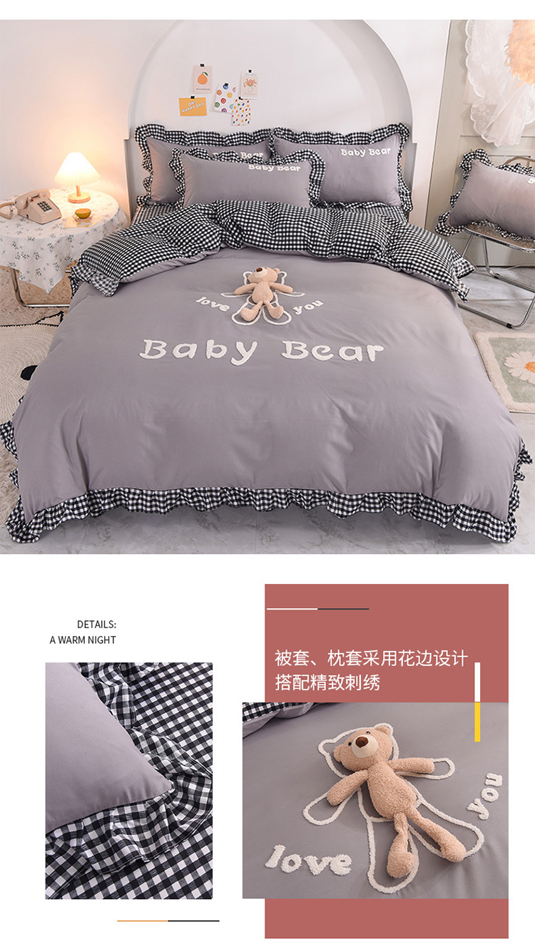当前位置: 91家纺网 > 商品网购 > 床品套件 > 四件套 > 普通磨毛四件套 > 梦之岛2021新款韩版磨毛床单款床裙款四件套玩偶熊系列 玩偶熊-灰色