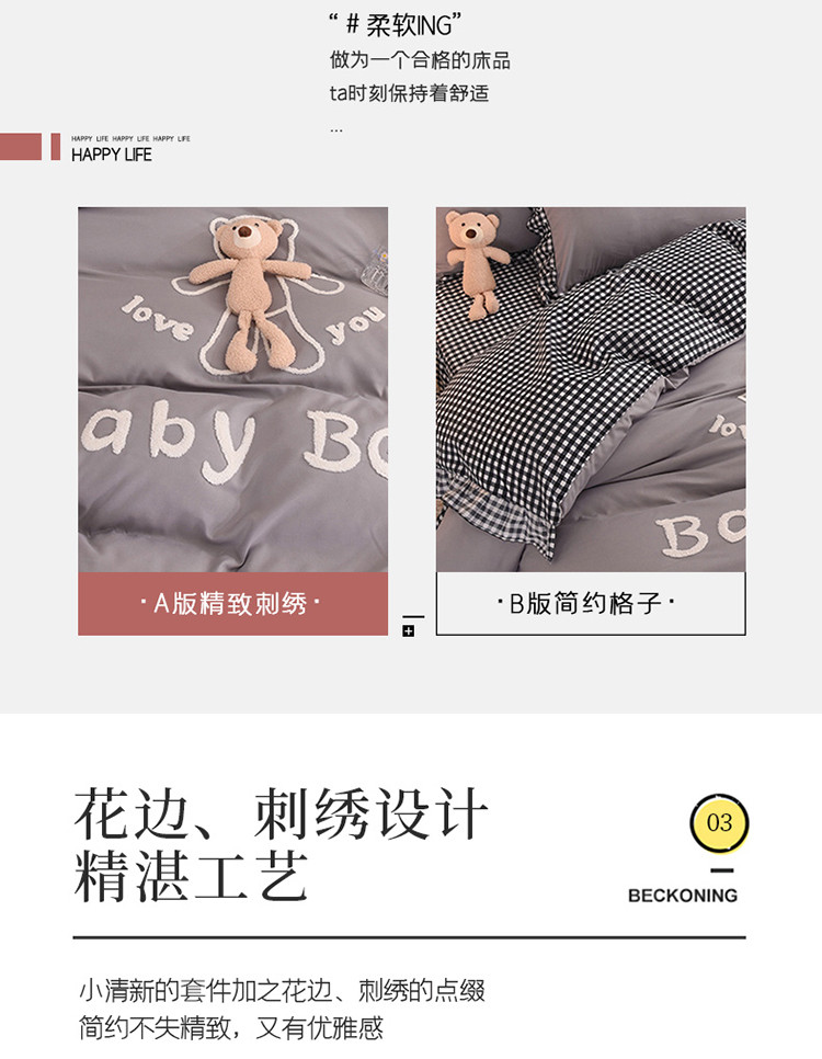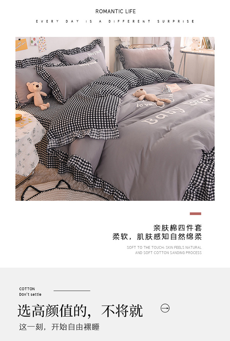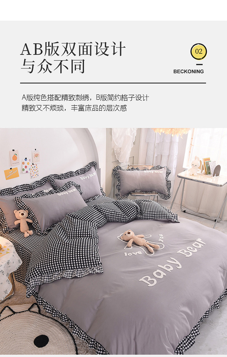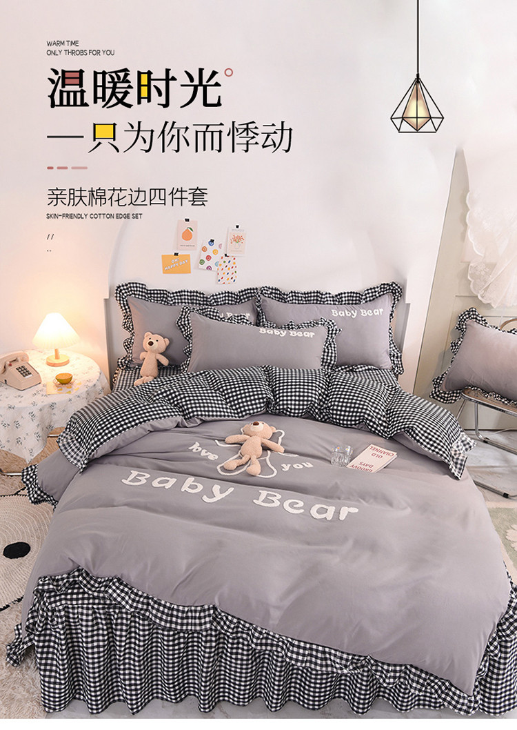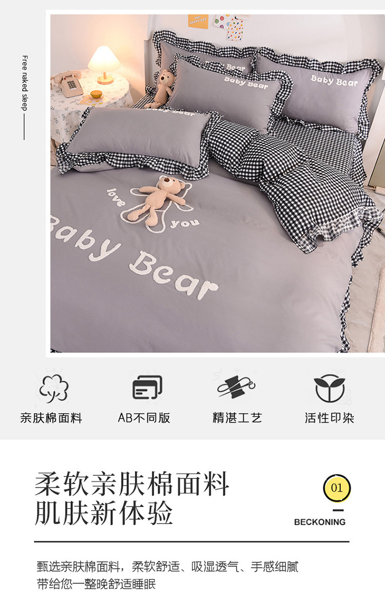 当前位置: 91家纺网 > 商品网购 > 床品套件 > 四件套 > 普通磨毛四件套 > 梦之岛2021新款韩版磨毛床单款床裙款四件套玩偶熊系列 玩偶熊-灰色