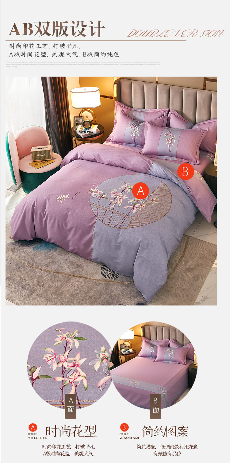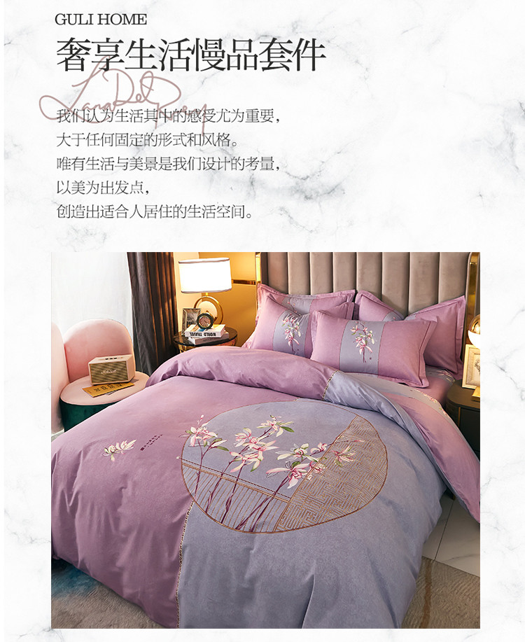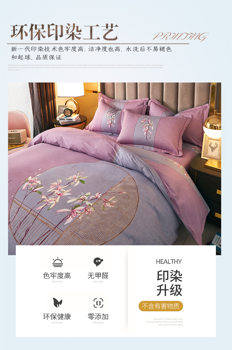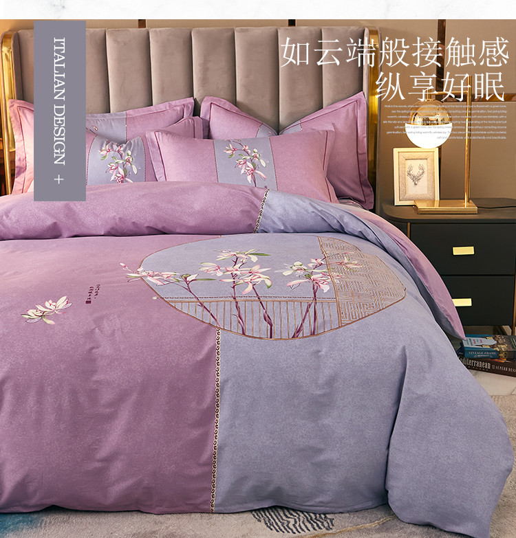 (总)雲归梦 2021新款全棉生态磨毛刺绣四件套,慕思-橙色,慕思-粉紫,慕思-灰,慕思-米黄,慕思-青绿,慕思-天蓝