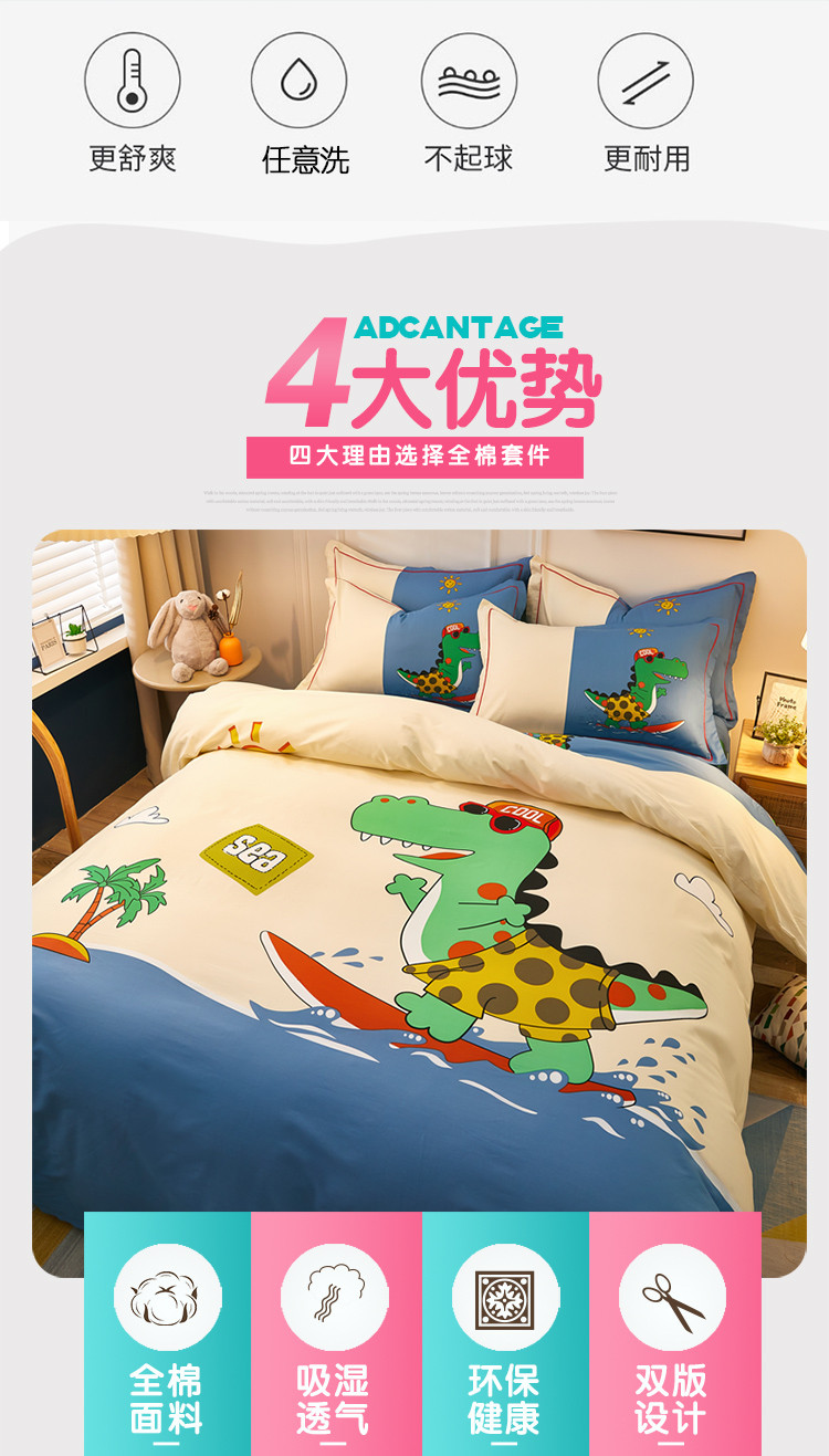 商品名称:雲归梦 2021全棉大版四件套可爱卡通系列 度假风
