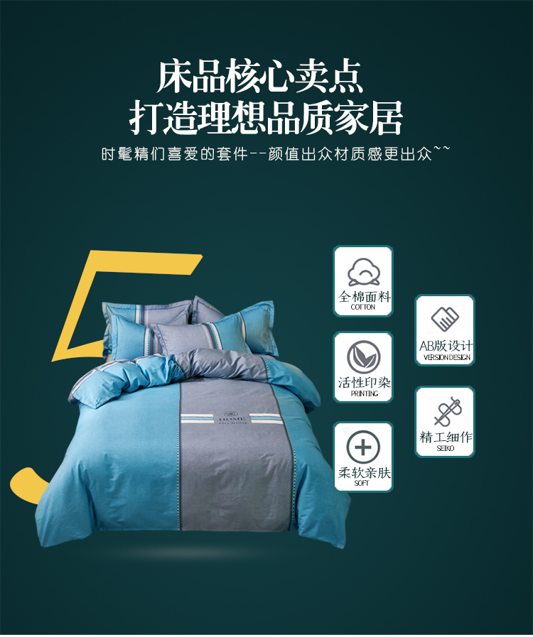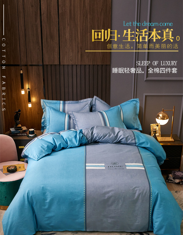 商品名称:雲归梦 2021全棉大版四件套休闲格条系列 卡洛斯