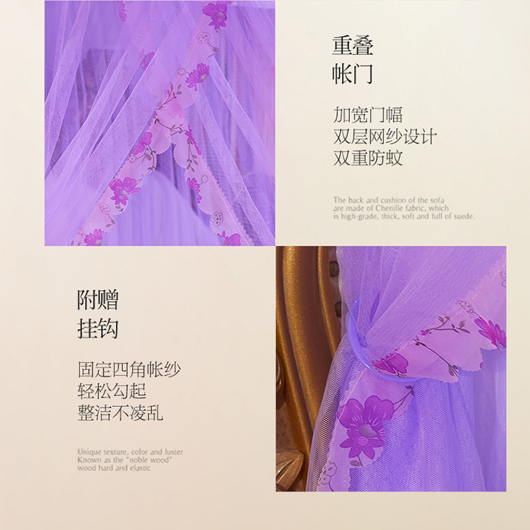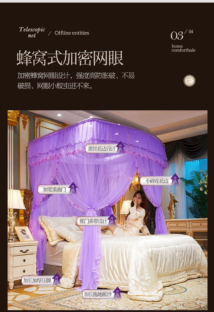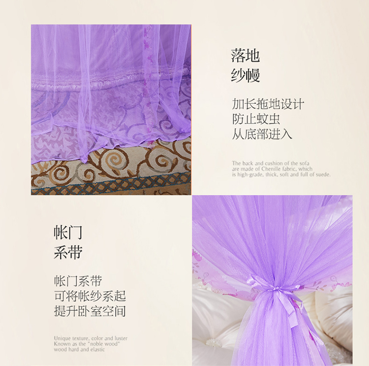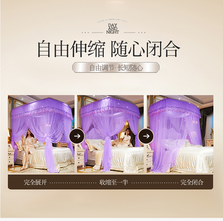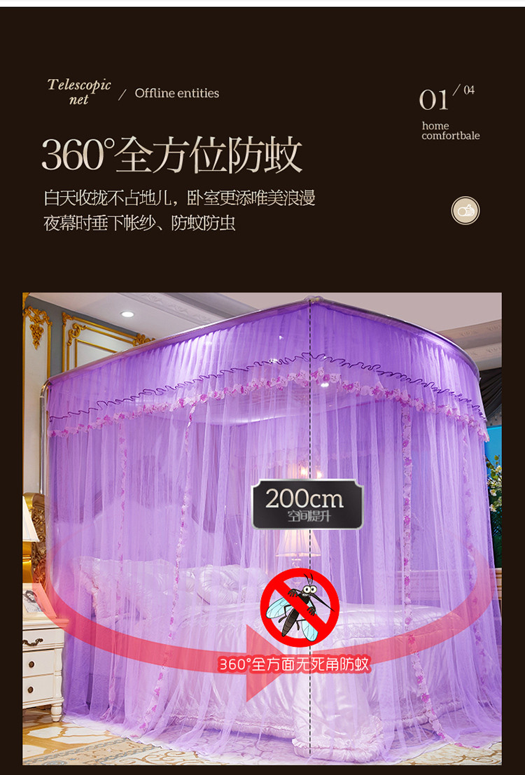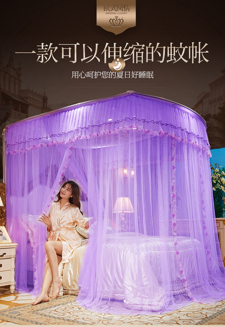 舞夜盛世 U型蚊帐伸缩蚊帐落地宫廷蚊帐加粗不锈钢全年有货 闭月羞花紫色